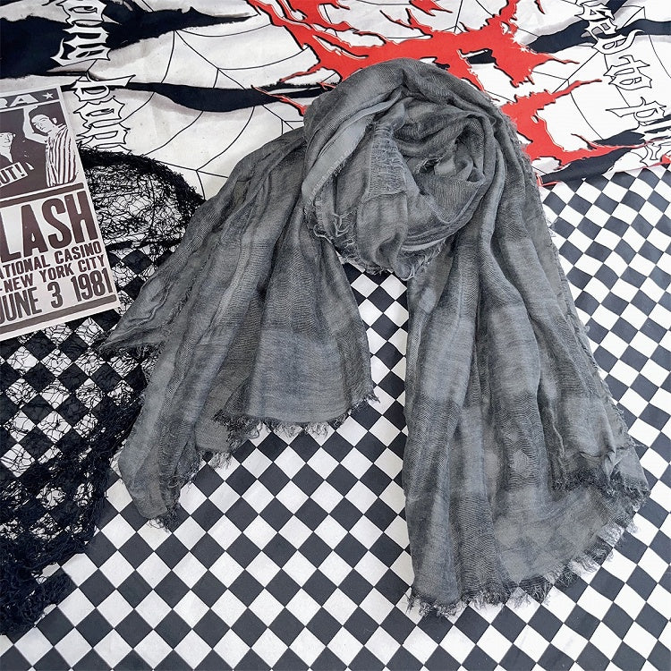 Verleihen Sie Ihrem Outfit mit unserem grauen Wasteland Punk Distressed Schal einen kantigen, Used-Look. Hergestellt aus hochwertigen Materialien, verleiht dieser Schal Ihrem Look einen Hauch von Rebellion. Bleiben Sie warm und sehen Sie mit diesem Must-have-Accessoire bezaubernd aus.