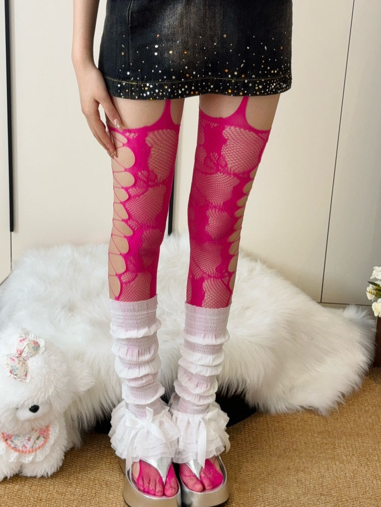 Grau/Weiß/Dunkel Cut-out Strümpfe Straps-Design Pink/Schwarz/Rot