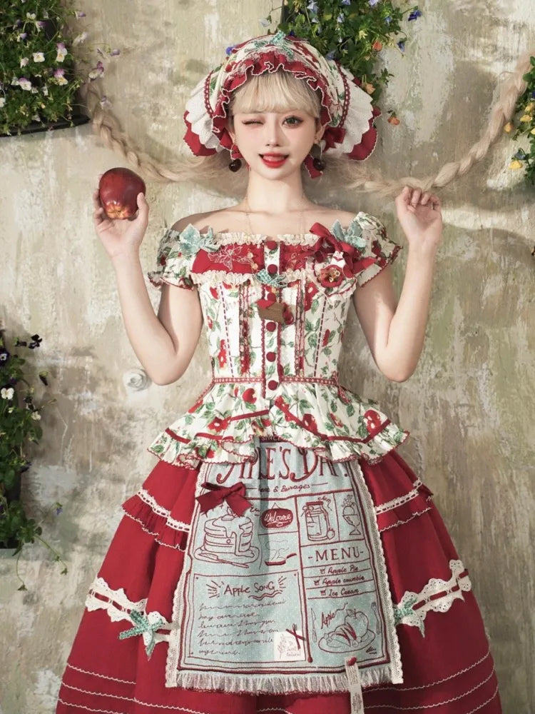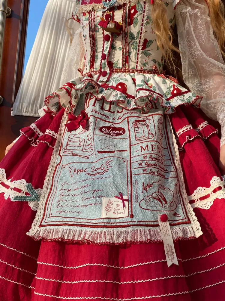 Diese süße Schürze mit grünen und roten Stickereien verleiht jeder Küche einen Hauch von Charme. Schützen Sie Ihre Kleidung beim stilvollen Kochen mit dieser schönen Schürze.