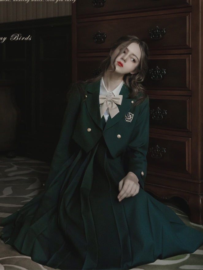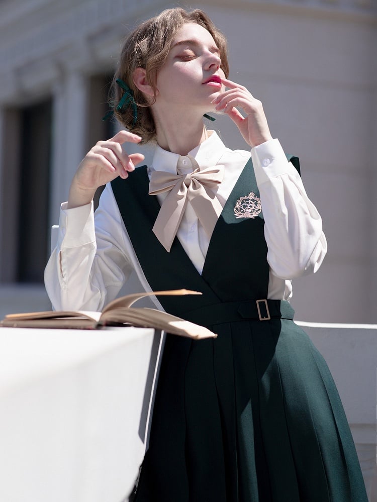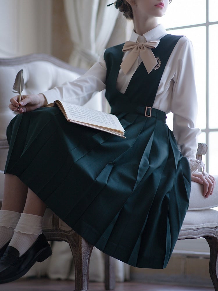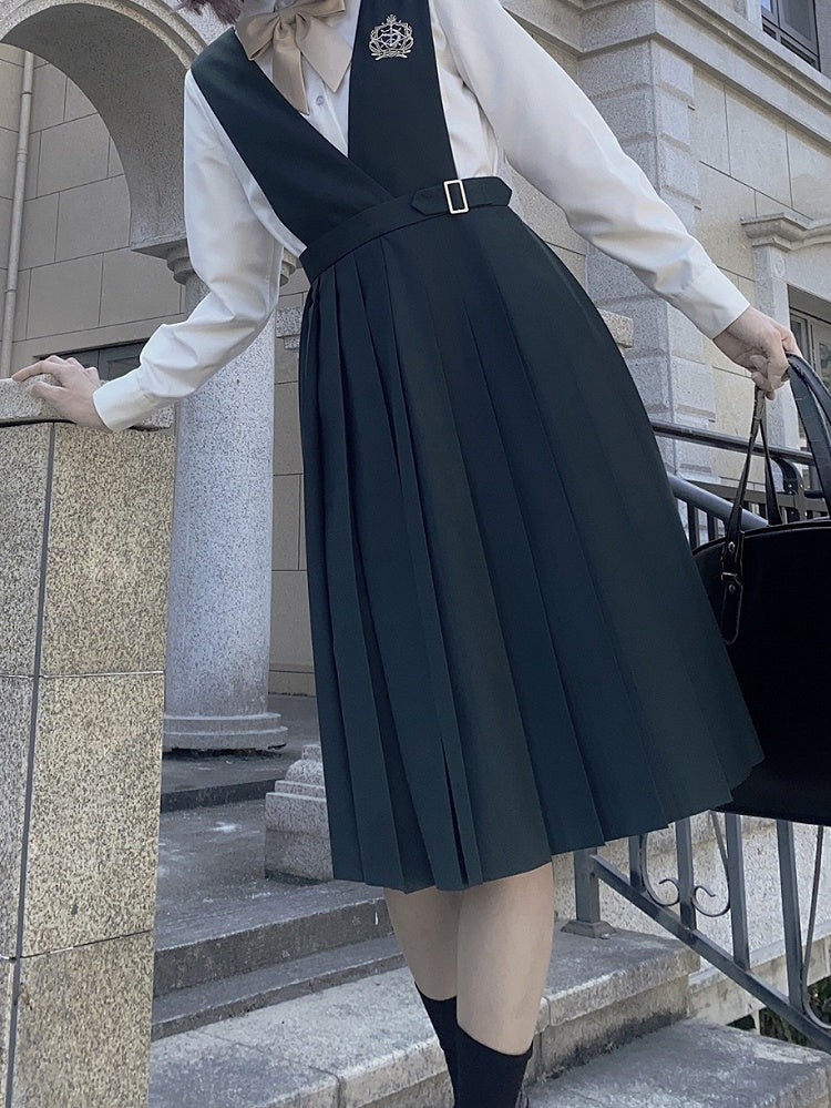 Grüner Gürtel mit Stickerei 65 Preppy Overalls Kellerfaltenrock / und 70cm Dunkel