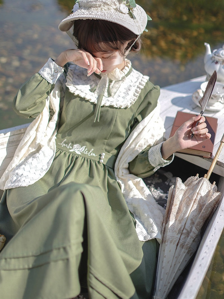 Blau-weißes Old School Lolita Fashion Kleid mit Schleife und Details, JSK-Set