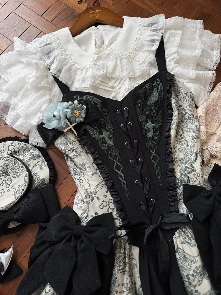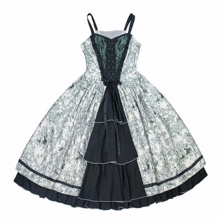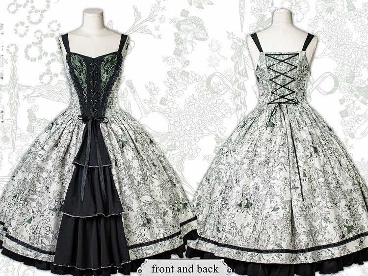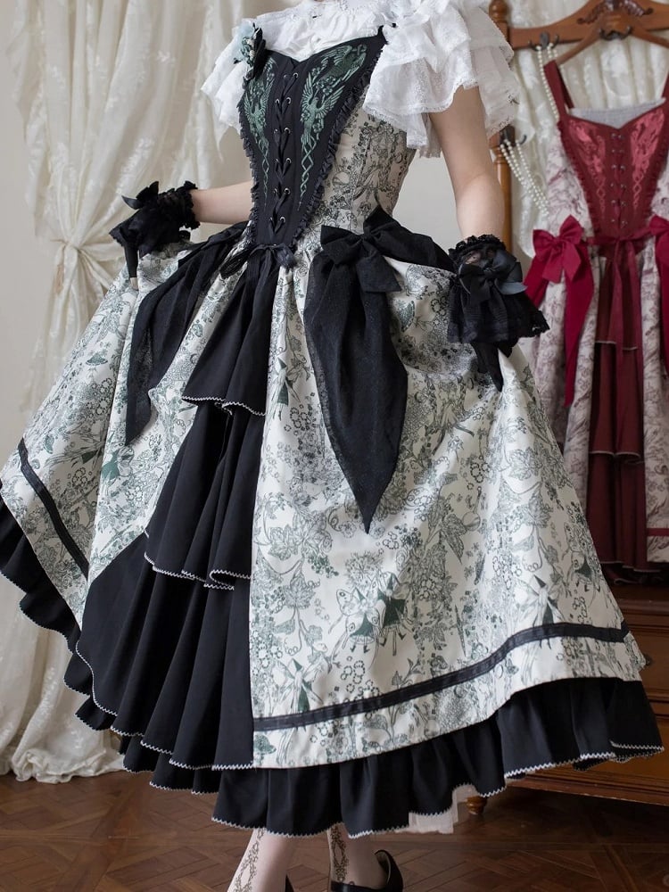 Green Forest Elegant with Print Animals Dress Lolita Bodice and Corset