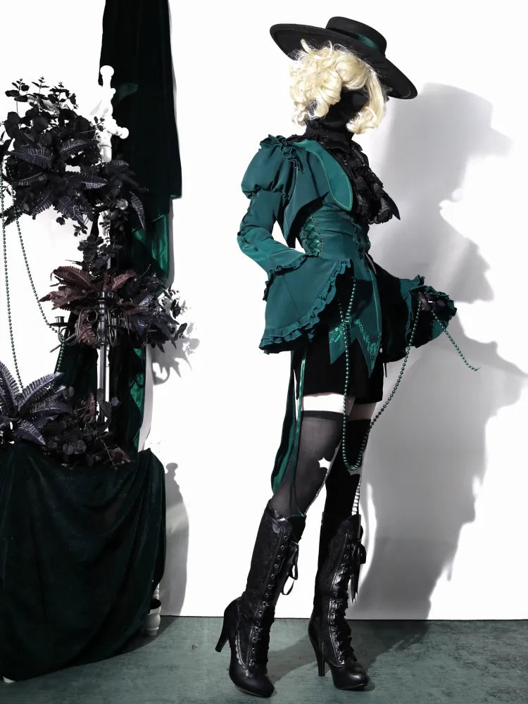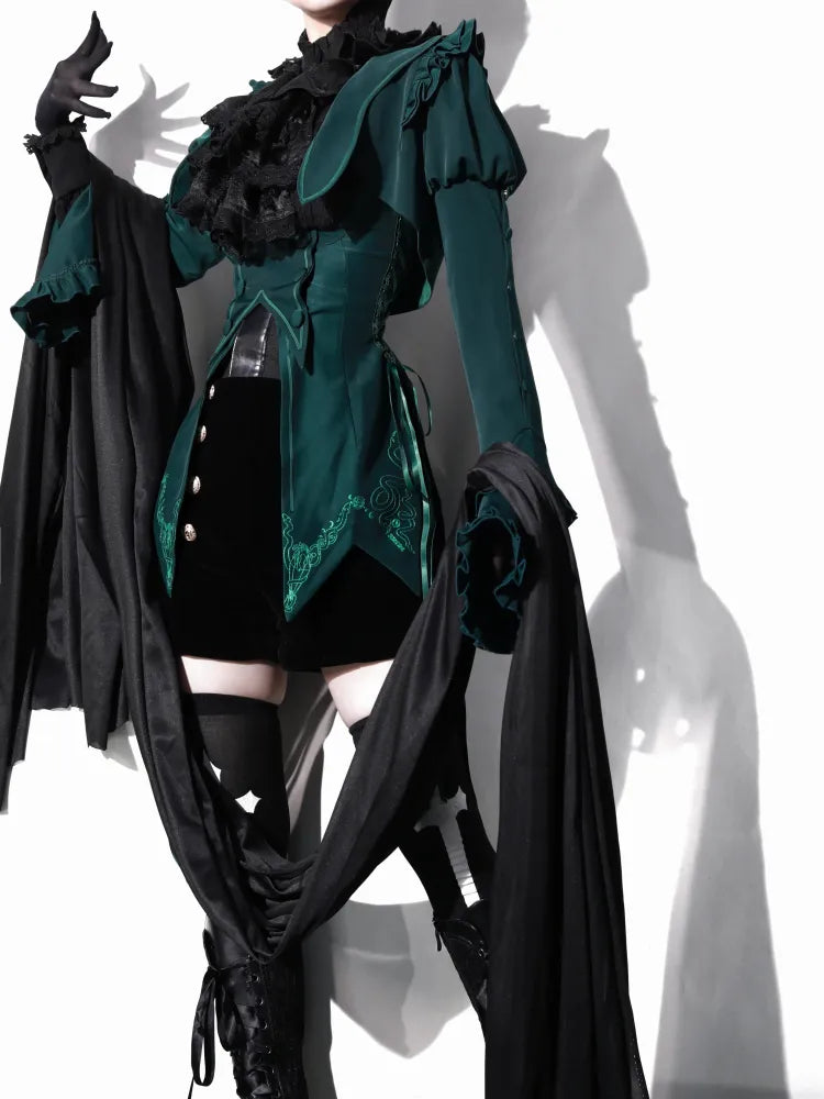 Grünes kurzes Oberteil mit Volant-Manschetten und Juliette-Ärmeln