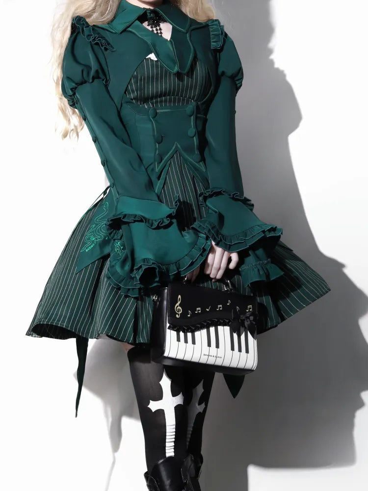 Schwarz-weißes Old School Lolita Fashion Kleid Bowknot Lolita JSK Set