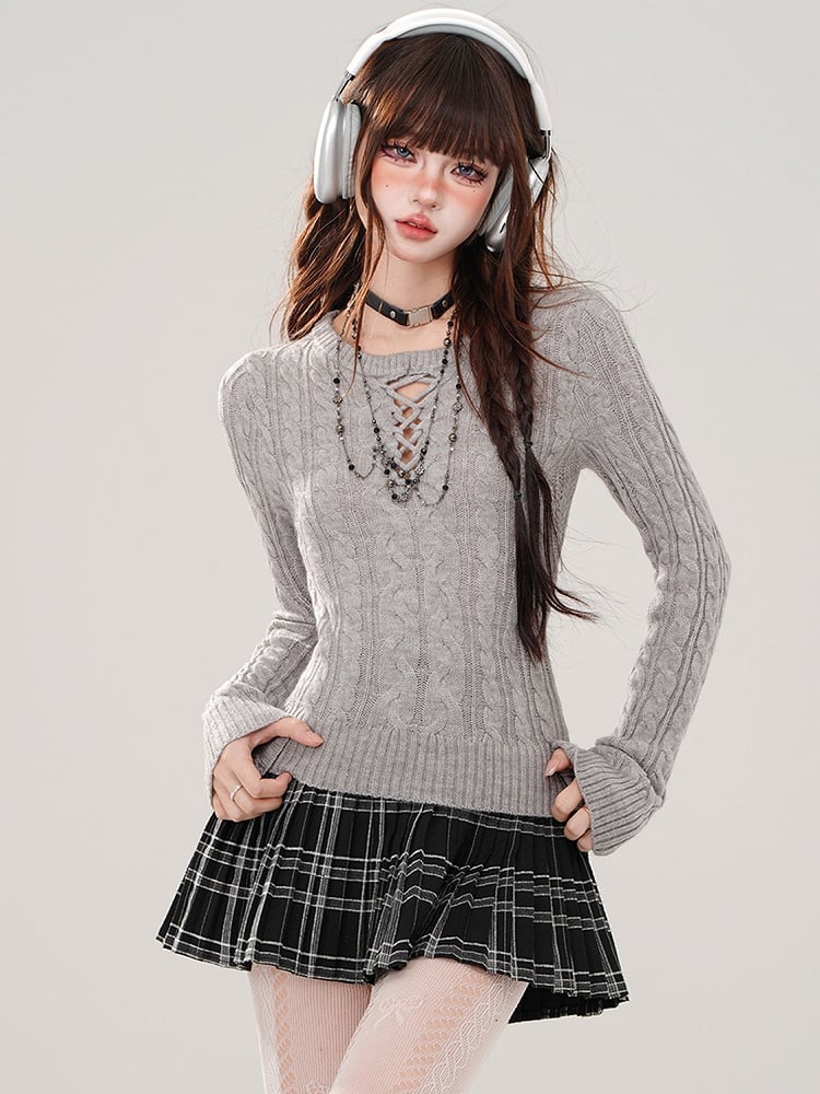 Wir präsentieren unseren bezaubernden grauen Rundhalspullover mit Cut-Out-Detail und schmaler Passform. Dieser Pullover mit Cut-Out-Detail und schmaler Passform ist die perfekte Kombination aus Stil und Komfort. Mit diesem Must-have für Ihre Garderobe bleiben Sie gemütlich und süß.
