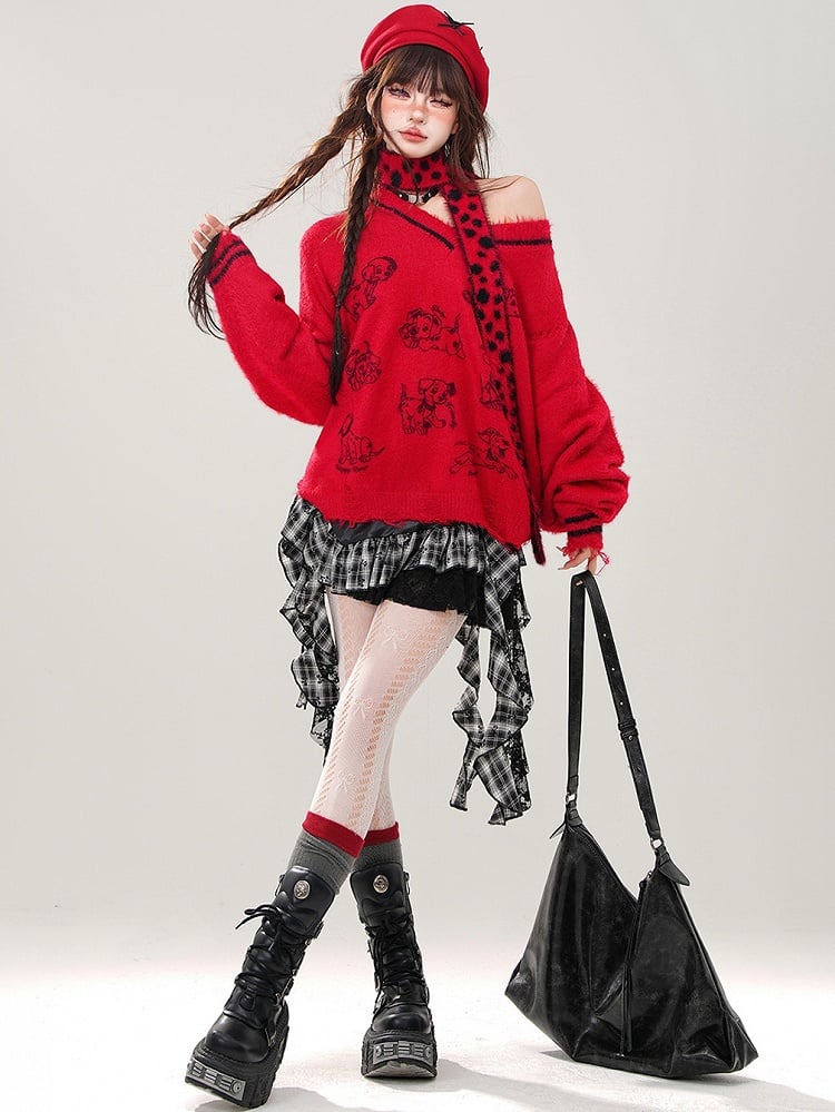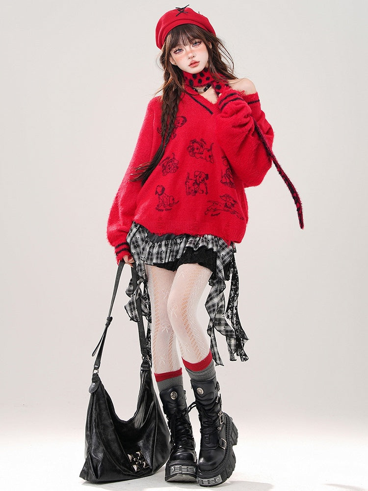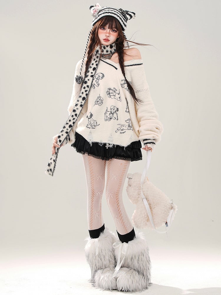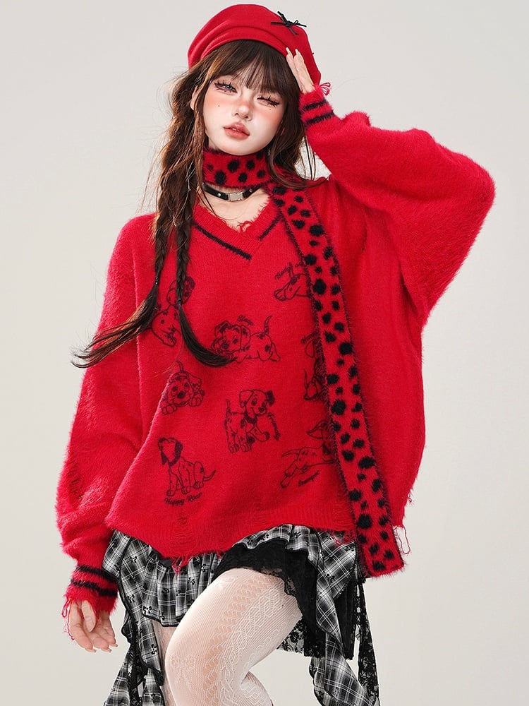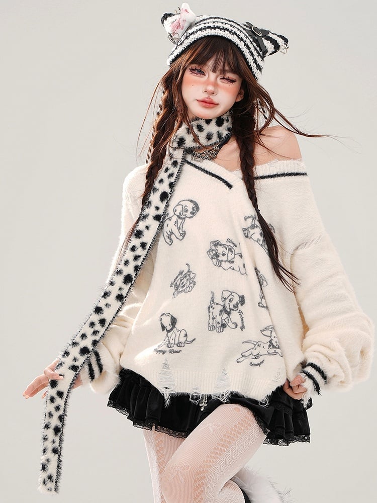 Dieser entzückende, lockere Pullover mit V-Ausschnitt von Grey Puppies wird mit einem kuscheligen Schal geliefert! Bleiben Sie warm und stilvoll mit unserem süßen Design, perfekt für Hundeliebhaber.