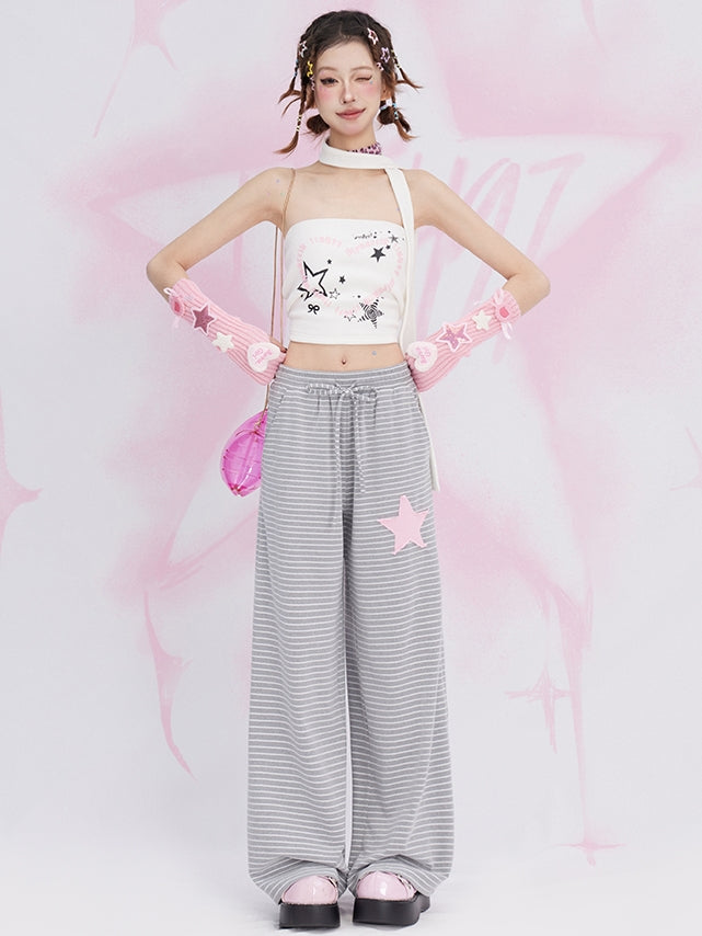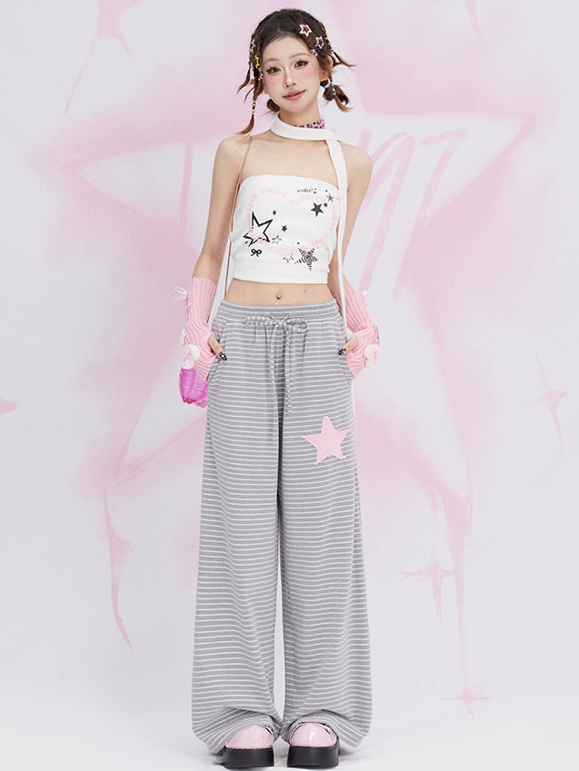 Der süße graue Stern-Patch verleiht dieser bequemen gestreiften Jogginghose Persönlichkeit. Der gerade Schnitt sorgt für einen entspannten, lässigen Look. Perfekt für gemütliche Tage zu Hause oder zum Erledigen von Besorgungen.