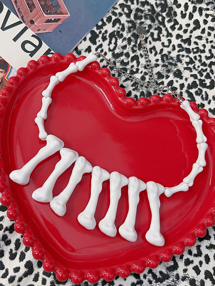 Weißer Y2K Gyaru Fashion Knochen Anhänger Choker