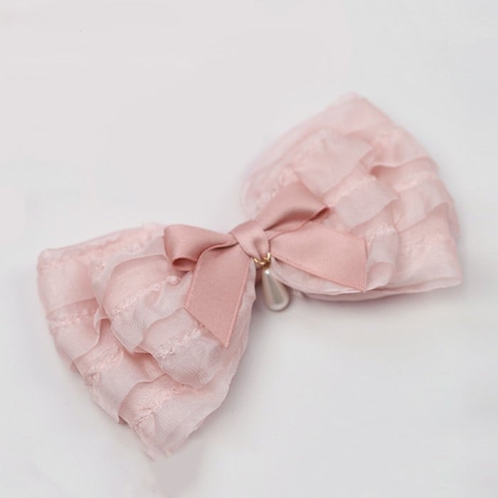 Haarspange in Schleifenform, Lolita-Anhänger mit Rüschen und rosafarbenem Perlentropfen