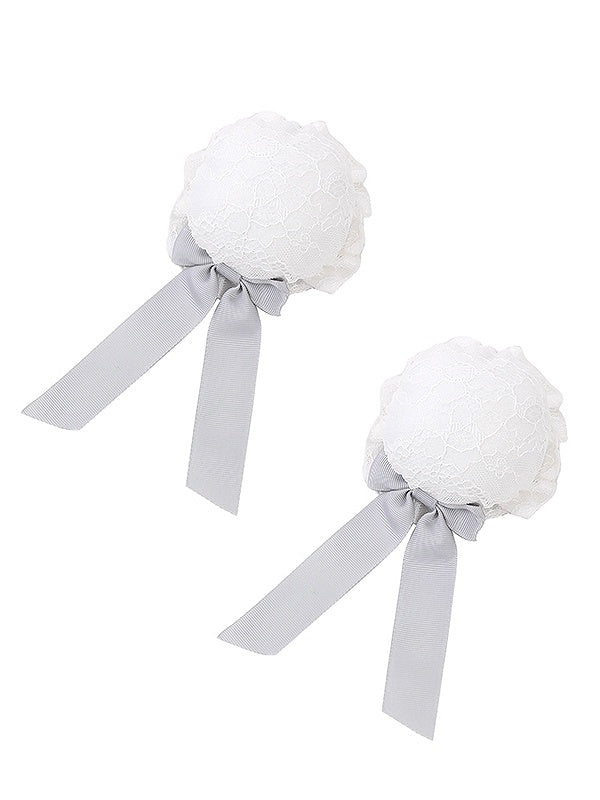 Graue Haarspangen mit Schleife und weißem Rüschenbesatz aus Jirai Kei-Spitze
