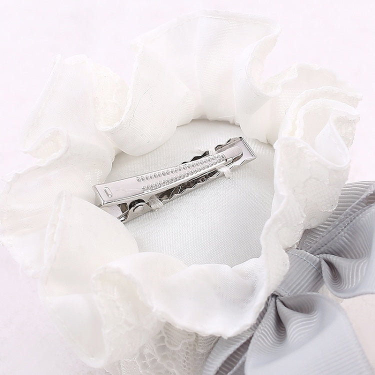 Haarspangen, graue Schleife, Kei, weiße Rüschenbesatz, Jirai-Spitze