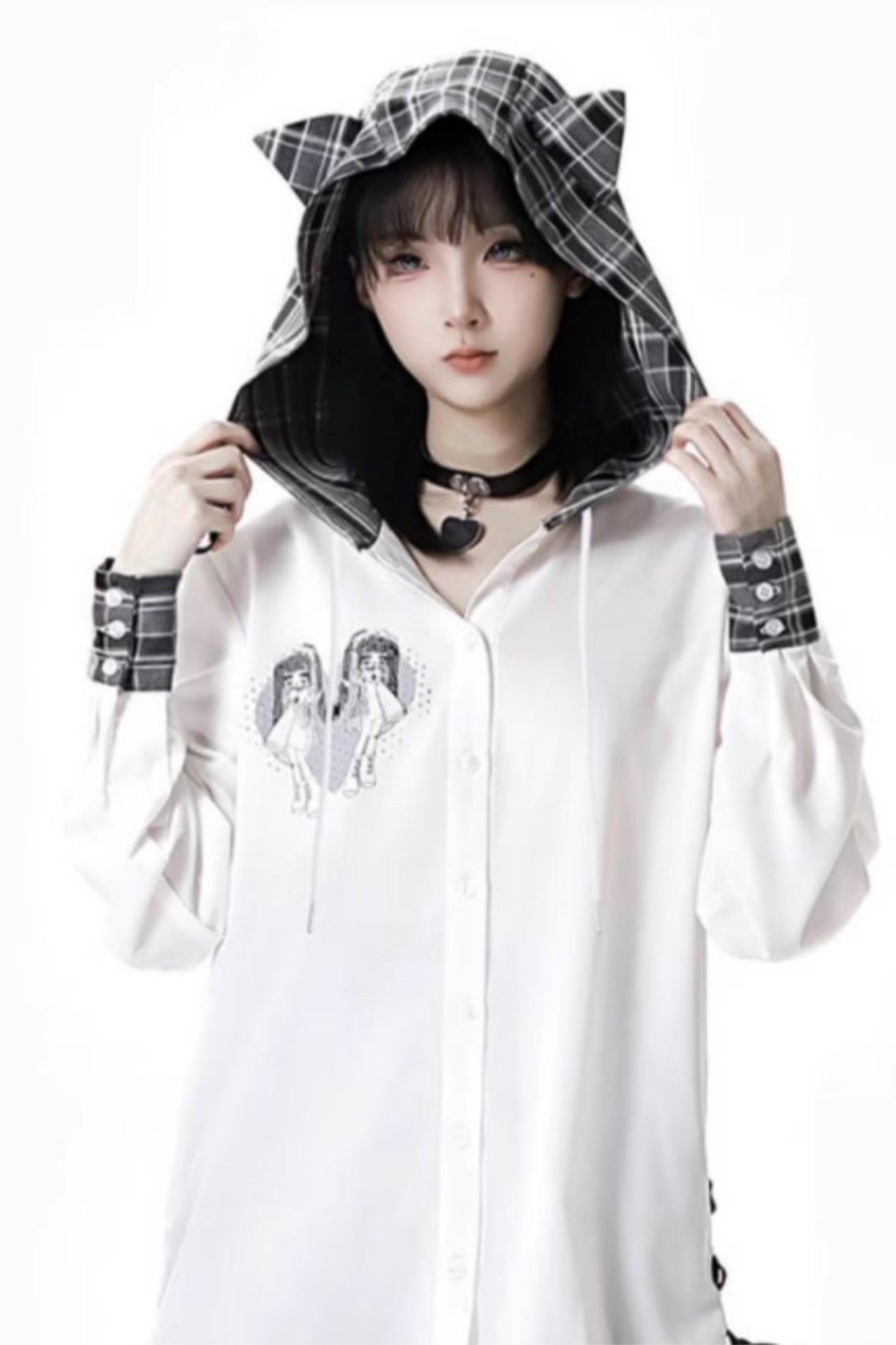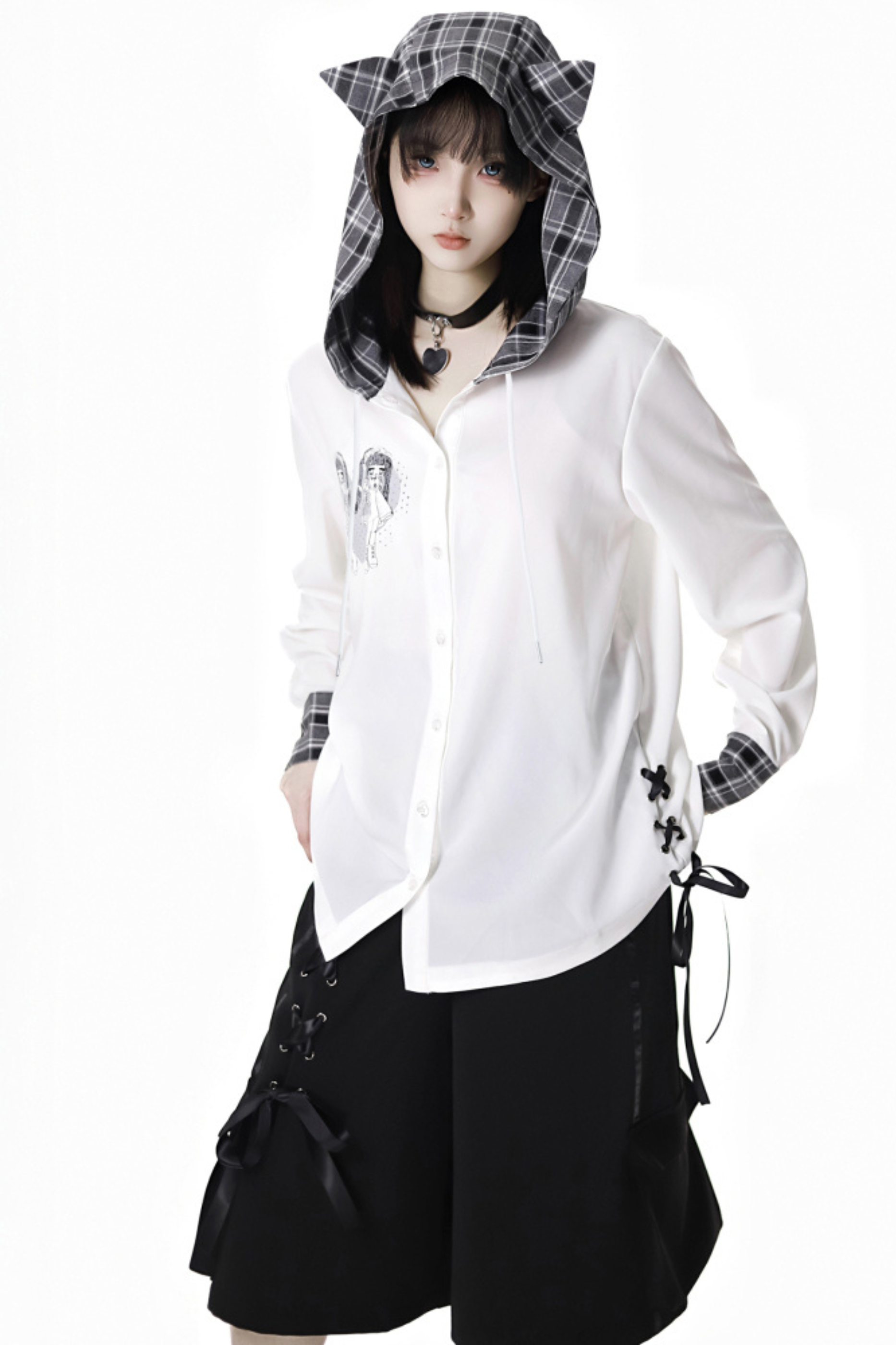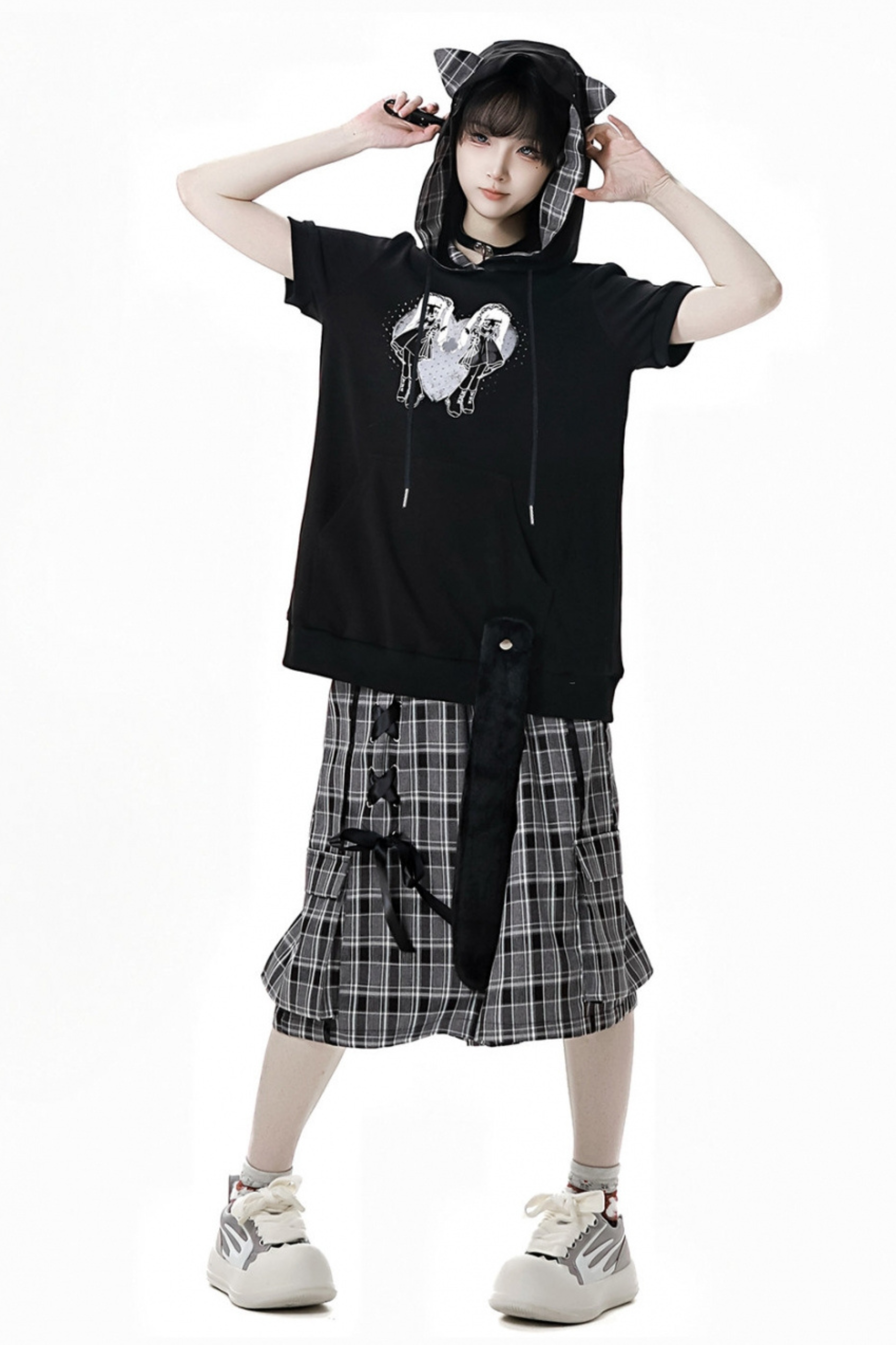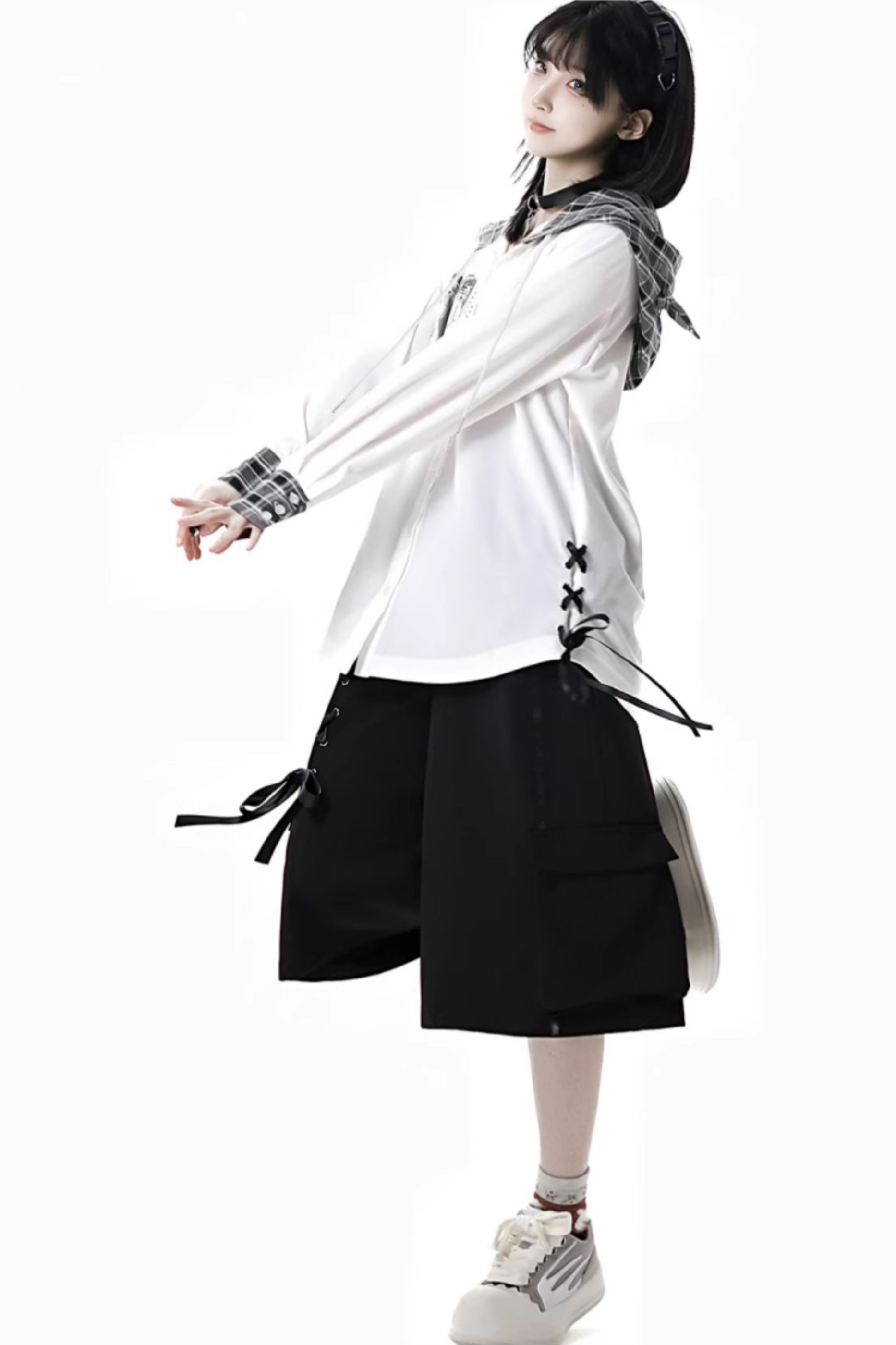 ❤Karo-Kapuzenhemd + Kapuzenoberteil + Halbhose❤