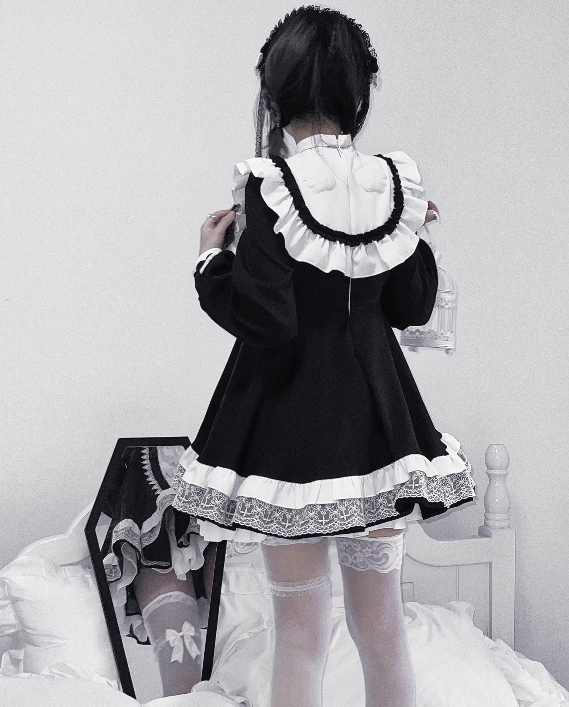 Schwarz-weißes Old School Lolita Fashion Kleid Bowknot Lolita JSK Set