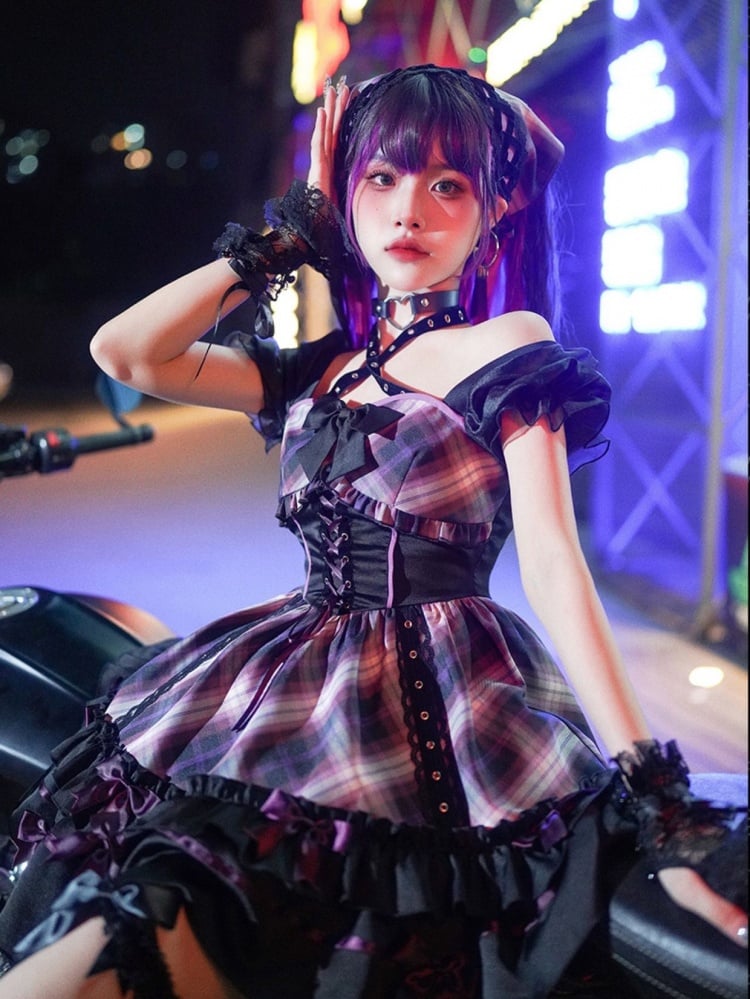 Dieses bezaubernde Neckholder-Kleid in lila Karomuster mit Schnürdetails sorgt für einen süßen und trendigen Look. Dank des einteiligen Designs ist es bequem zu tragen und perfekt für jeden Anlass. Entdecken Sie Ihr inneres Idol mit diesem stilvollen Kleid.