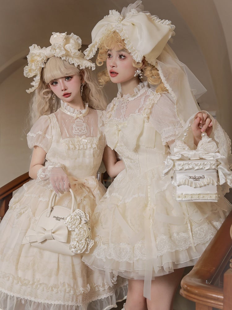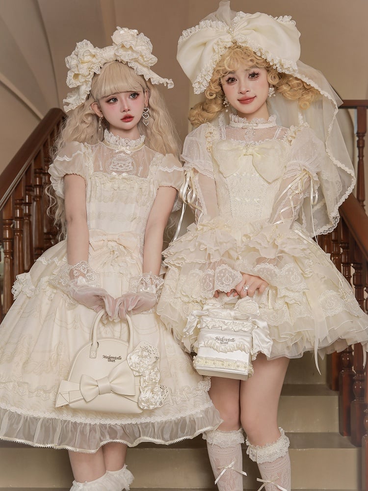 Schwarz-weißes Old School Lolita Fashion Kleid Bowknot Lolita JSK Set