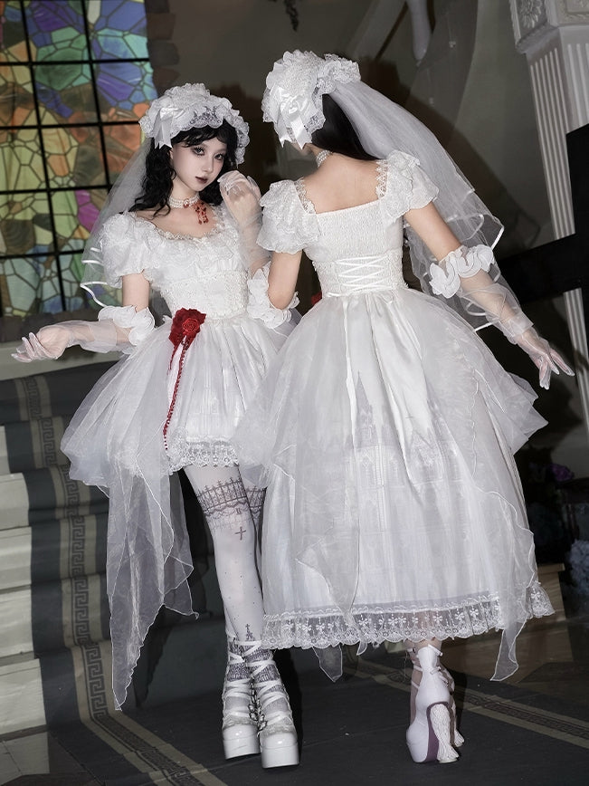 Schwarz-weißes Old School Lolita Fashion Kleid Bowknot Lolita JSK Set