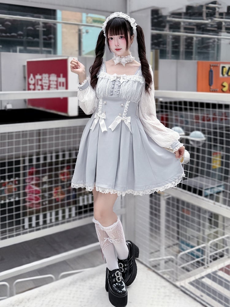 Flounce Pattern Blue Embellishments Apron Star with Retro Hem Skirt Self-tie and Plaid