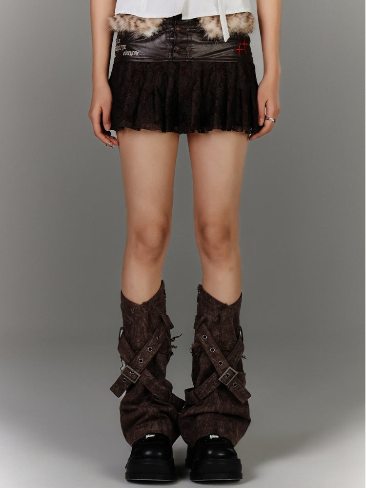 Saum Mode Mini Plüsch Leopard Taille Millard Gyaru Spitze Patches Kaffee Glamourösen Rock