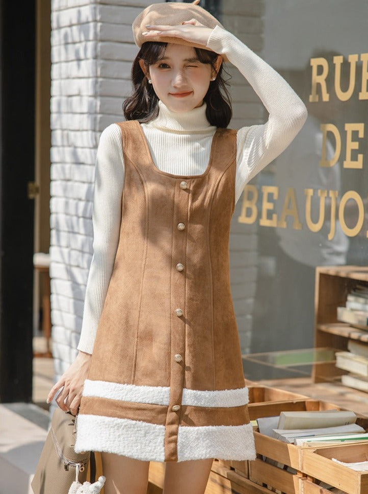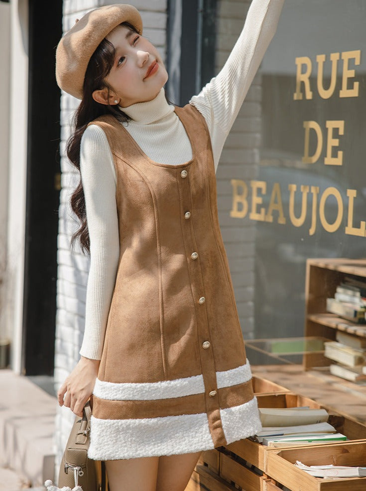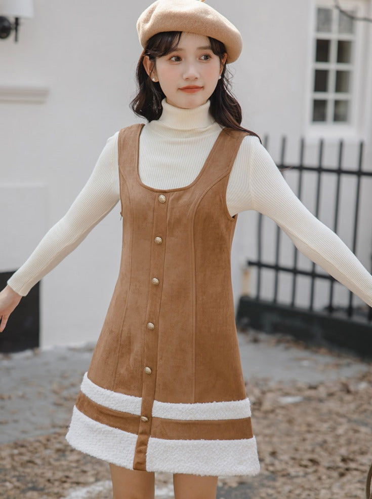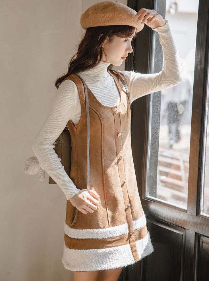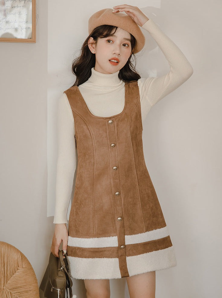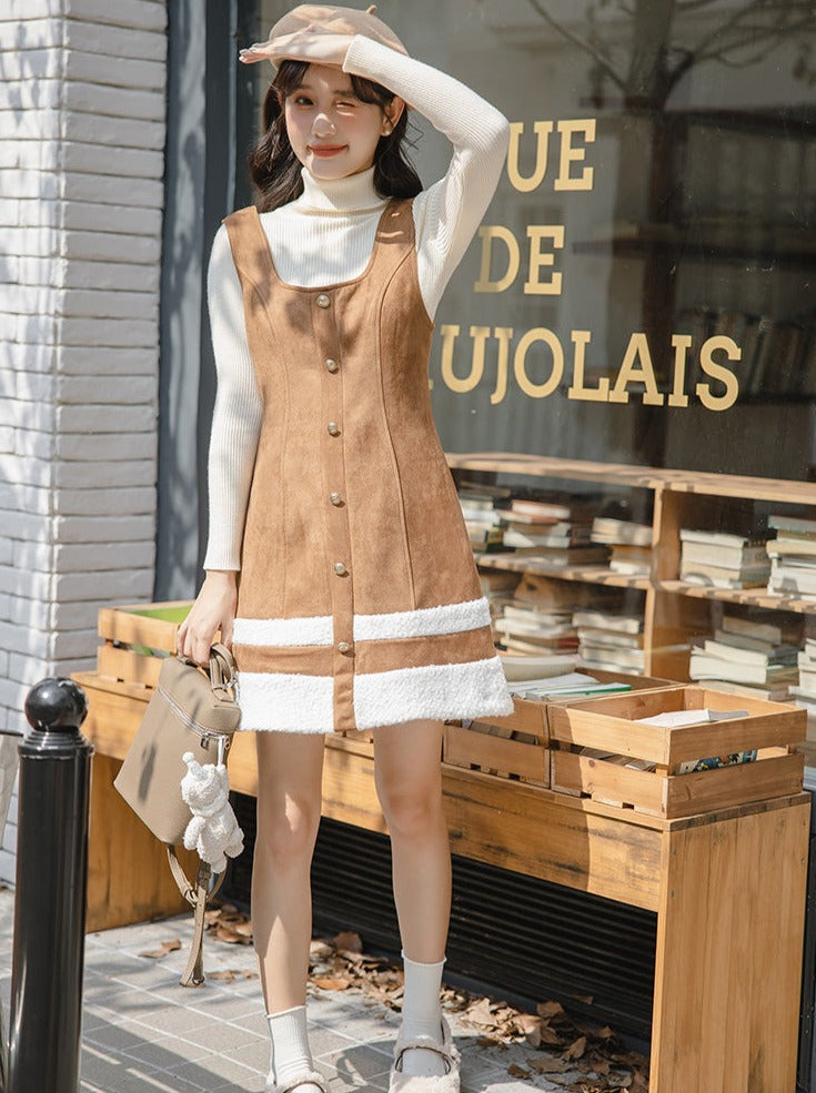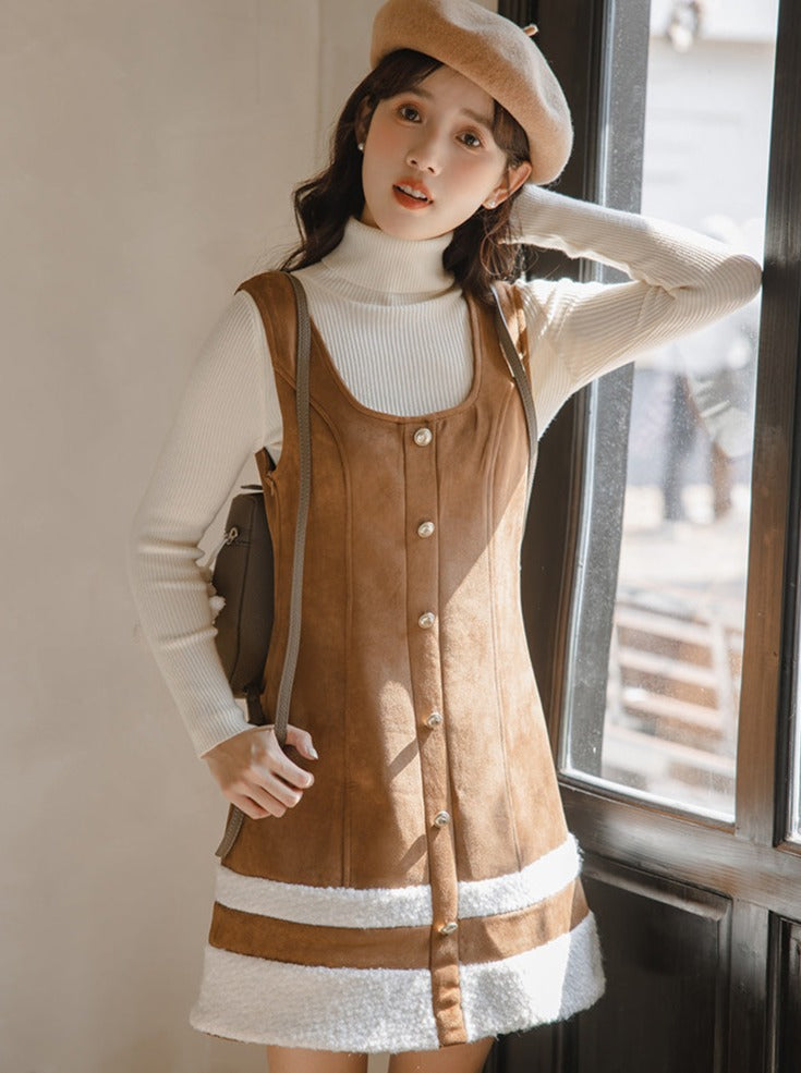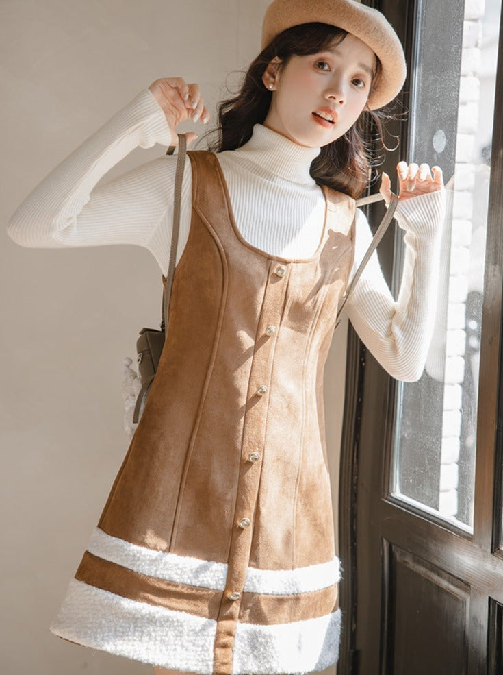 Hoch gestricktes Rockoberteil + Hosenträger-Halsboa