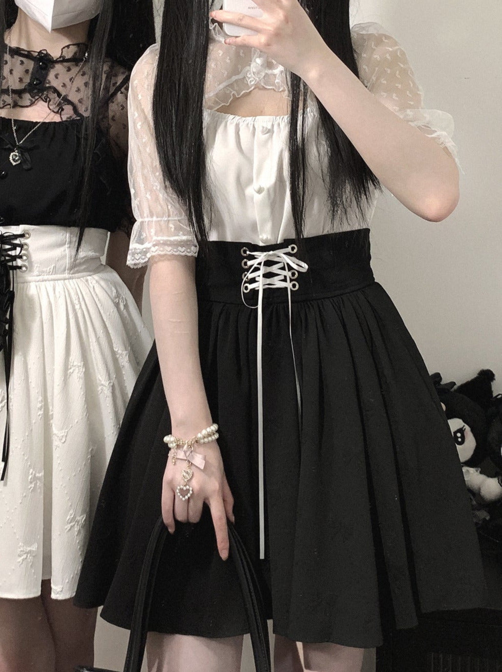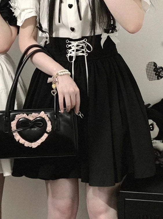 Schwarz-weißes Old School Lolita Fashion Kleid Bowknot Lolita JSK Set