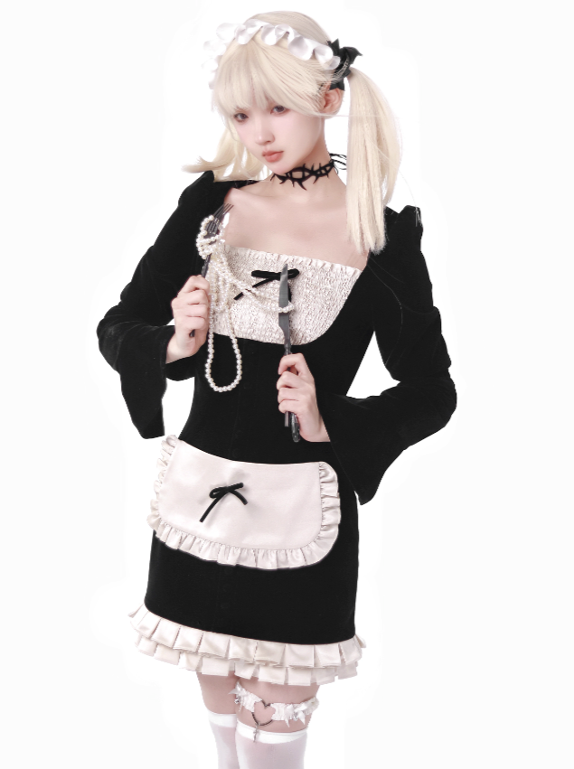 Hip Dress Klassische quadratische Samtschürze für Dienstmädchen