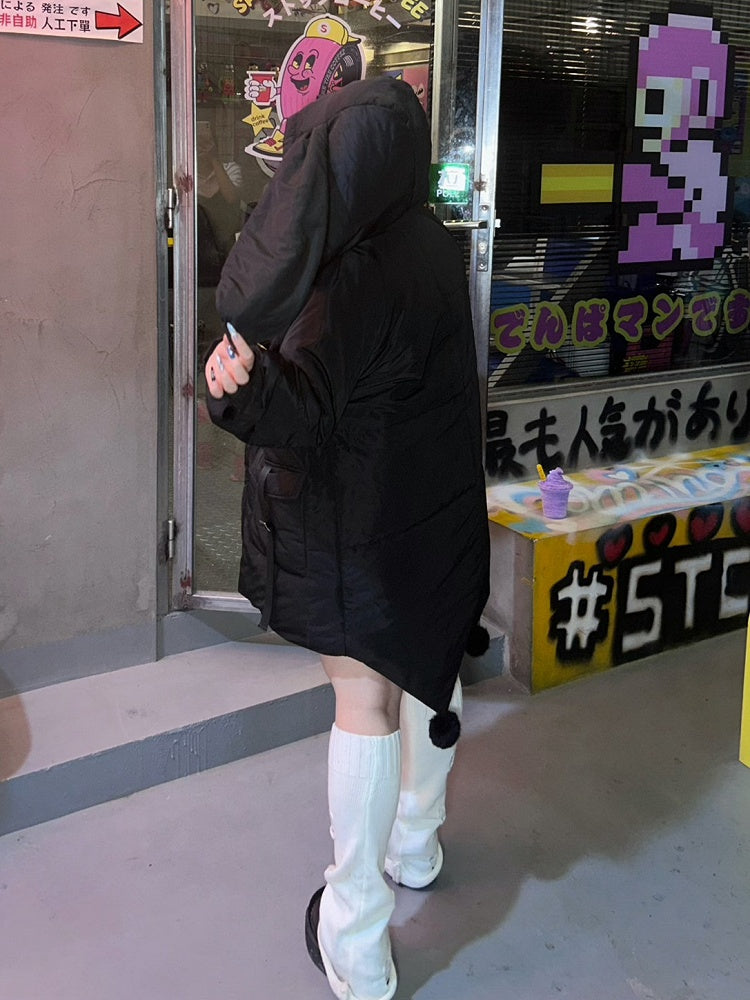 Pufferjacke mit Kapuze und Ohren, Übergröße, Hase, Schwarz
