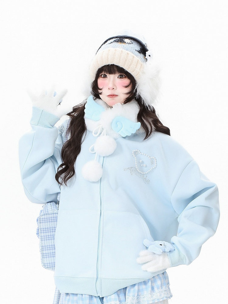 Hoodie Daily Jacket Blue/Grey/Black Rhinestone Ear Accents Kawaii Bear - Hood