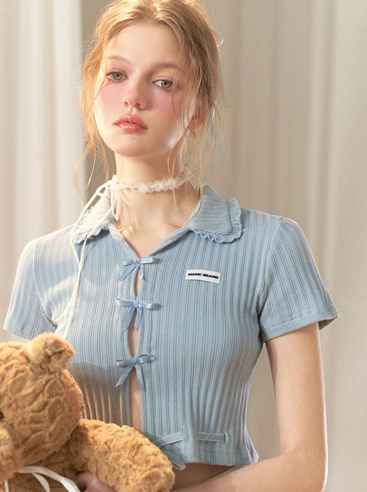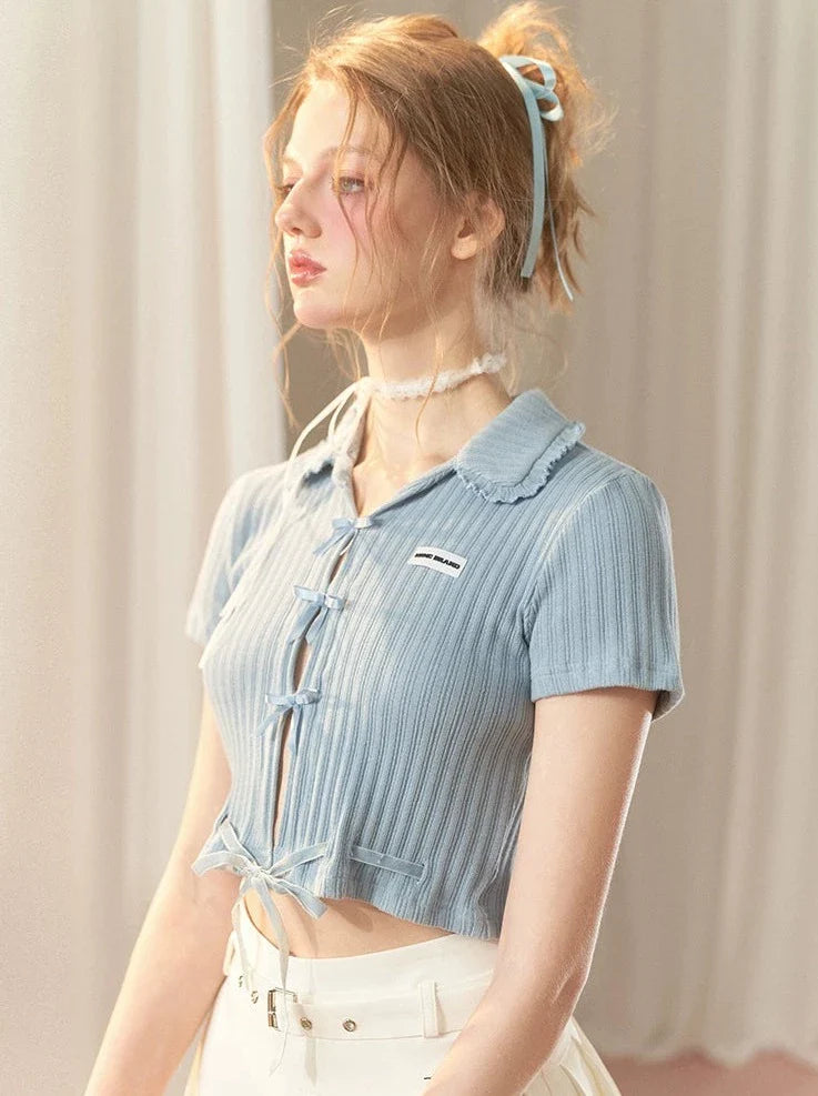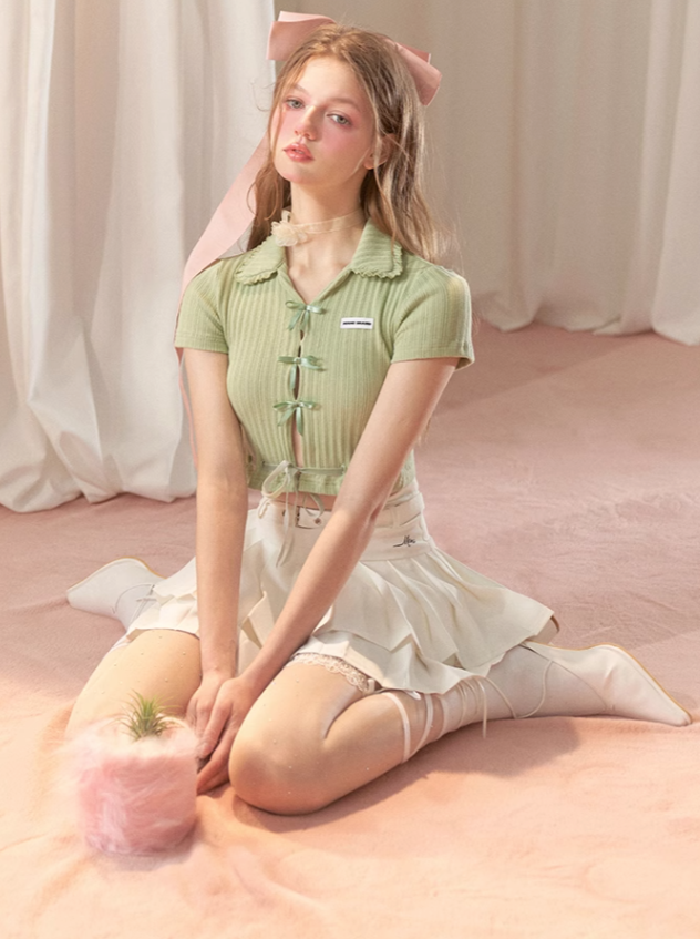 Hot Girl Satin Schleife Süßes Kurzes Top