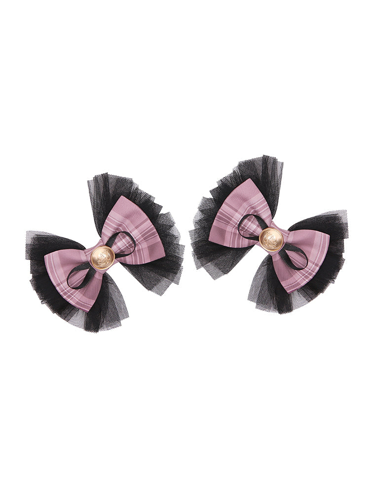 Idol Lolita Rosa karierte Haarspangen mit Schleife