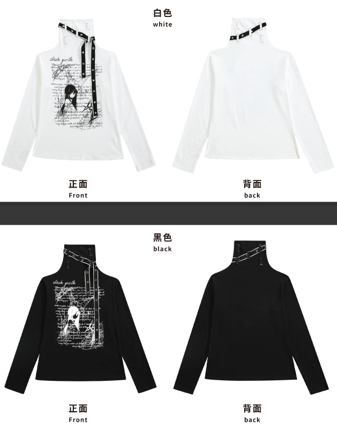 Entdecken Sie Ihren inneren Manga-Stil mit unserem Jirai Kei schwarz-weißen High Neck Top. Mit den Trägerdetails, die diesem Top einen Hauch von Kantigkeit verleihen, fallen Sie garantiert auf. Perfekt, um Ihre süße und zugleich coole Seite zum Ausdruck zu bringen.