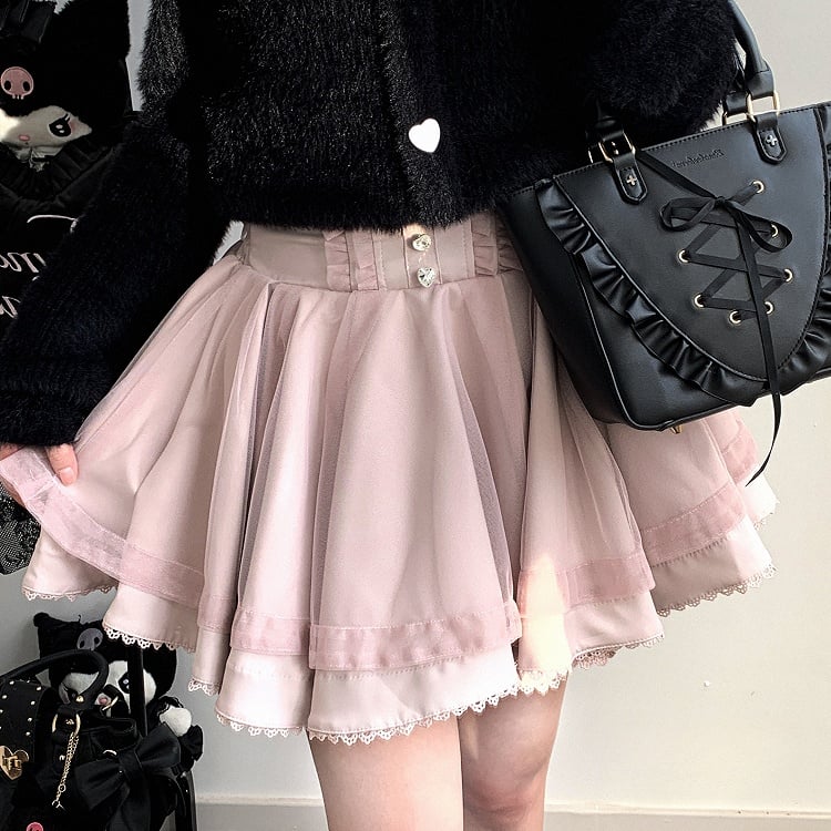 Jirai Kei – Rosa Tüllrock mit selbstbindenden Trägern und hoher Taille