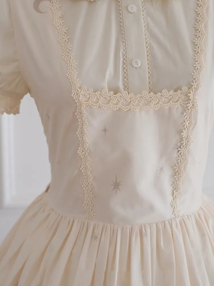 Beigefarbener Lolita-Pulloverrock mit Bäckerei-Print und quadratischem Ausschnitt