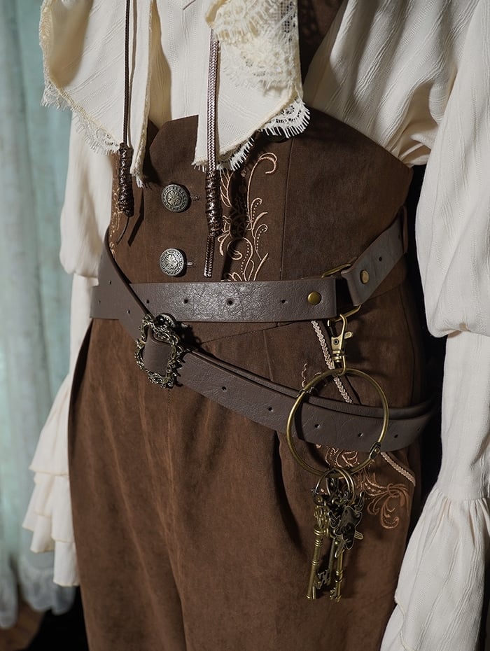 Kaffee / Schwarzer Gürtel mit Schlüsselanhänger