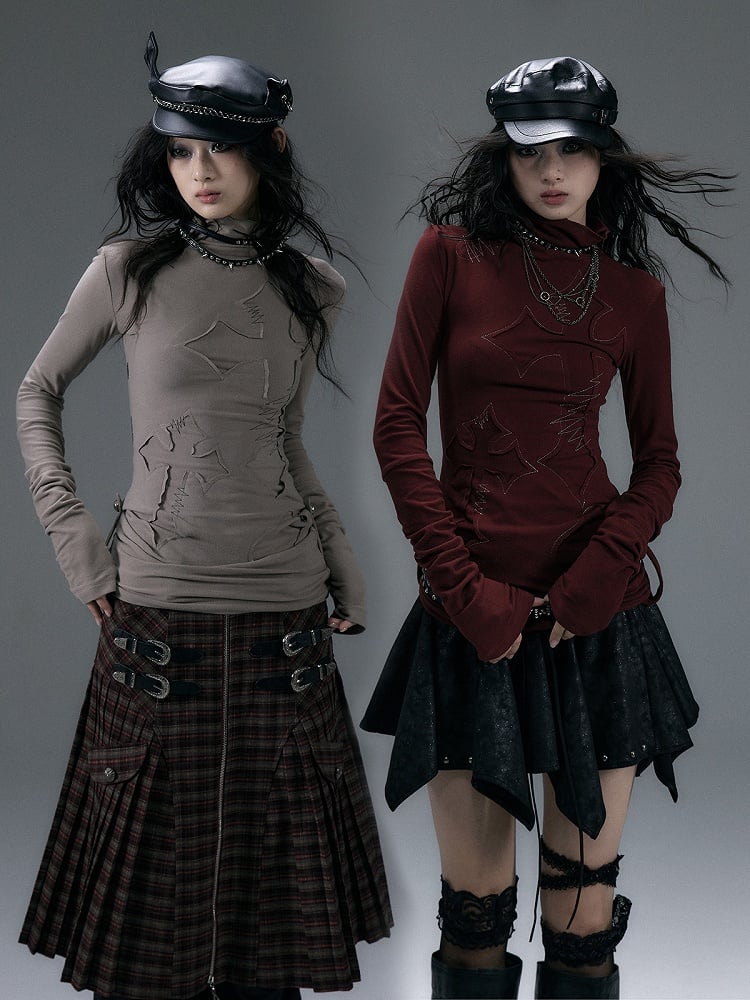 Dieses bezaubernde Top mit hohem Kragen ist eine vielseitige und stilvolle Ergänzung für Ihre Garderobe. Dank des wendbaren Designs können Sie zwischen Khaki und Dunkelrot wechseln und so verschiedene Looks kreieren. Der hochgeschlossene Schnitt verleiht einen Hauch von Eleganz und lässt sich leicht elegant oder leger kombinieren.
