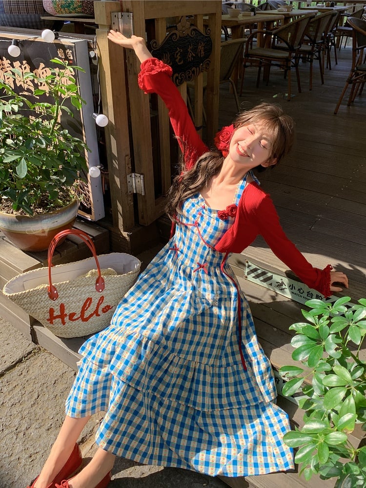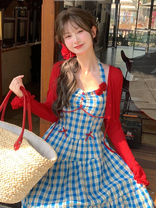 Strickjacke mit selbstbindendem Träger, Vintage, süßes Rot, Rüschenbündchen