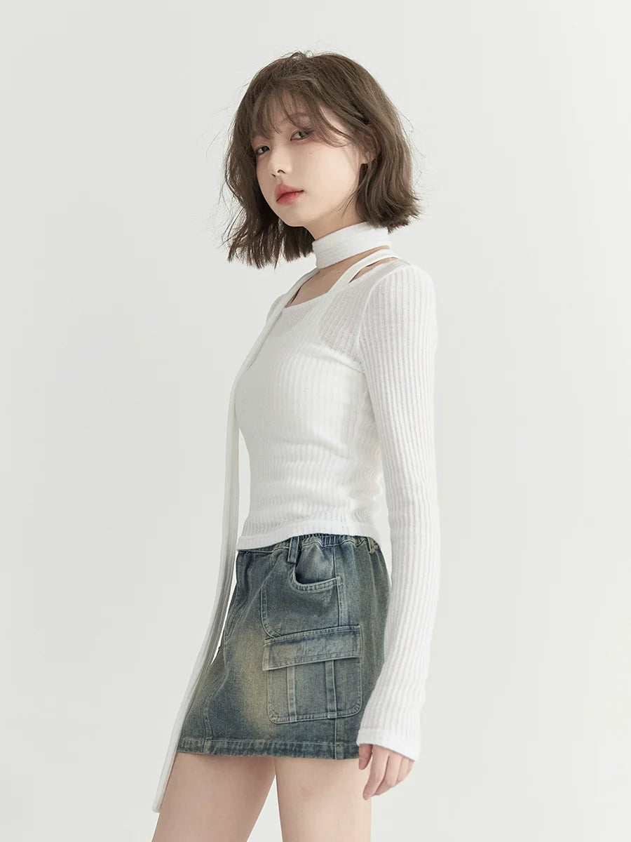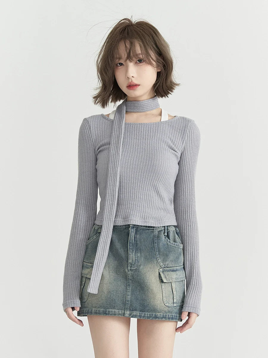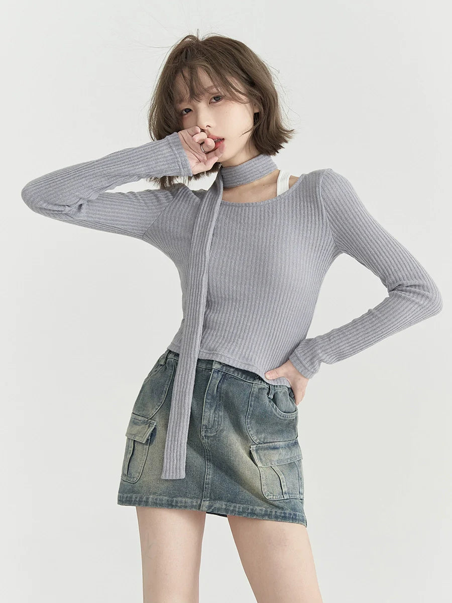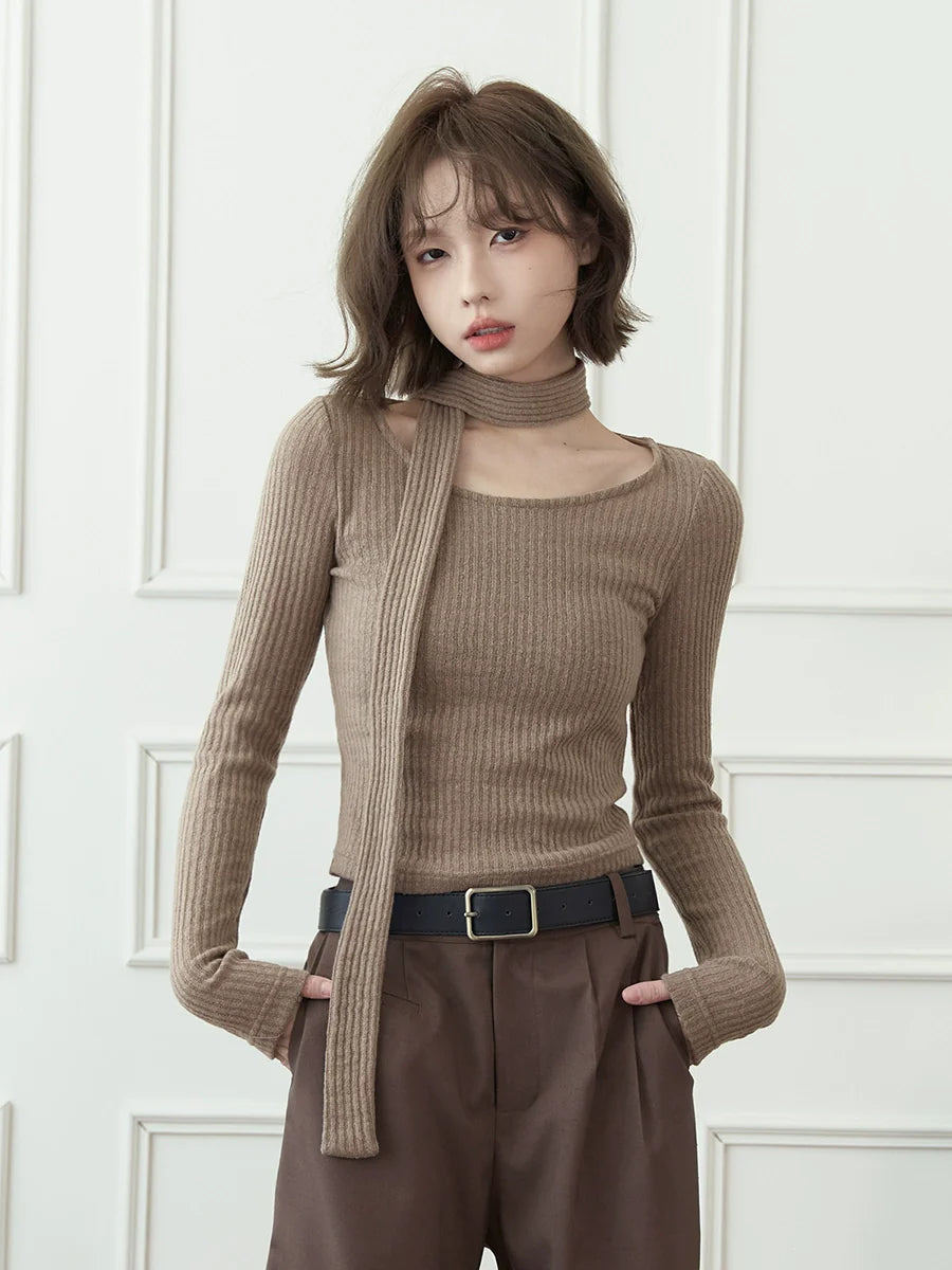 Runder, niedriger Strickschal