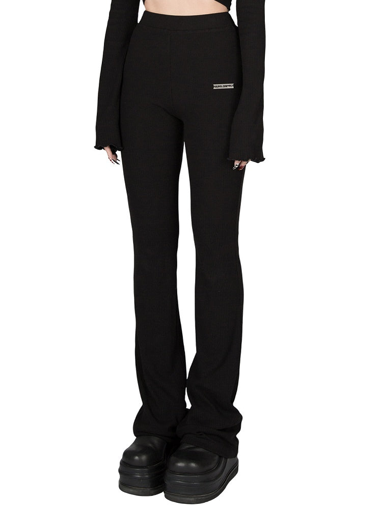 Strickhose Stretchy High-Waist - Ausgestellt Figurschmeichelnd Schwarz