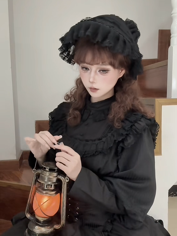 Schwarz-weißes Old School Lolita Fashion Kleid Bowknot Lolita JSK Set