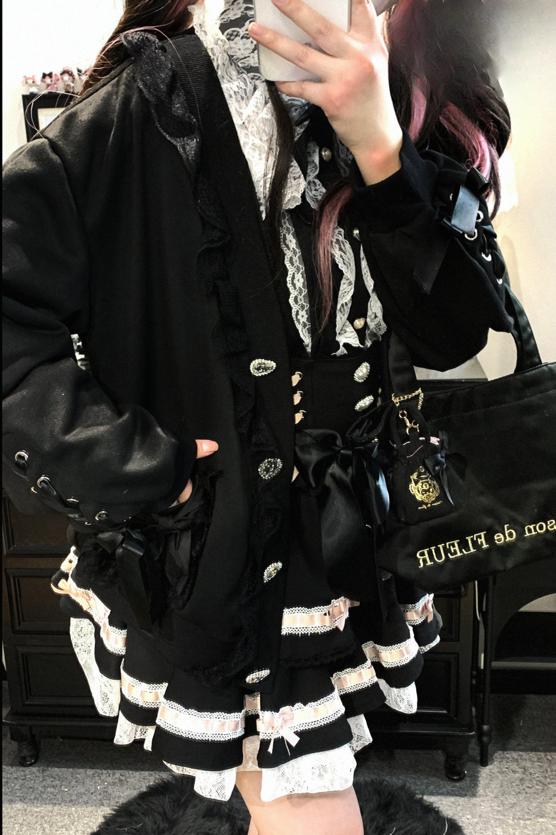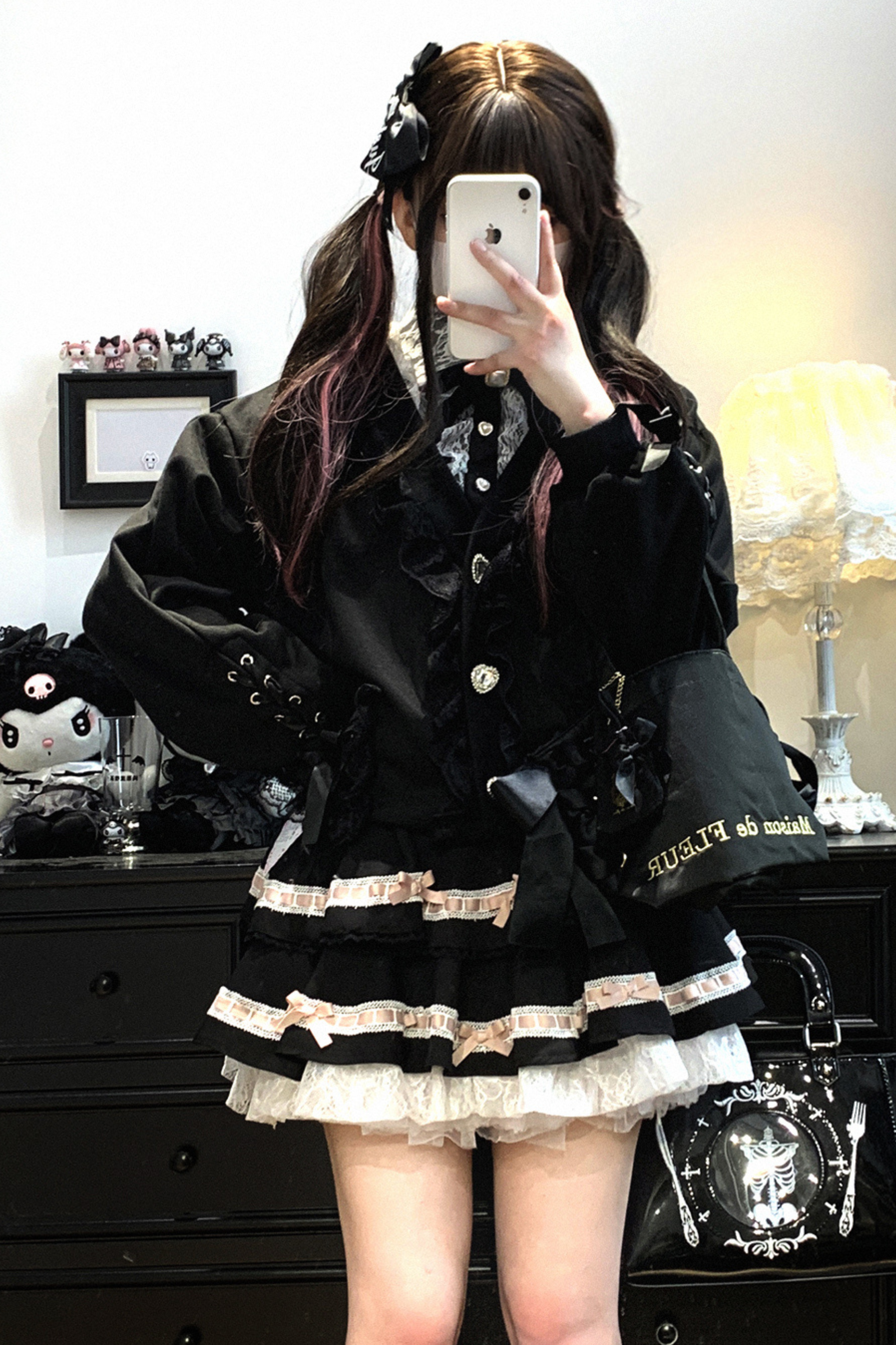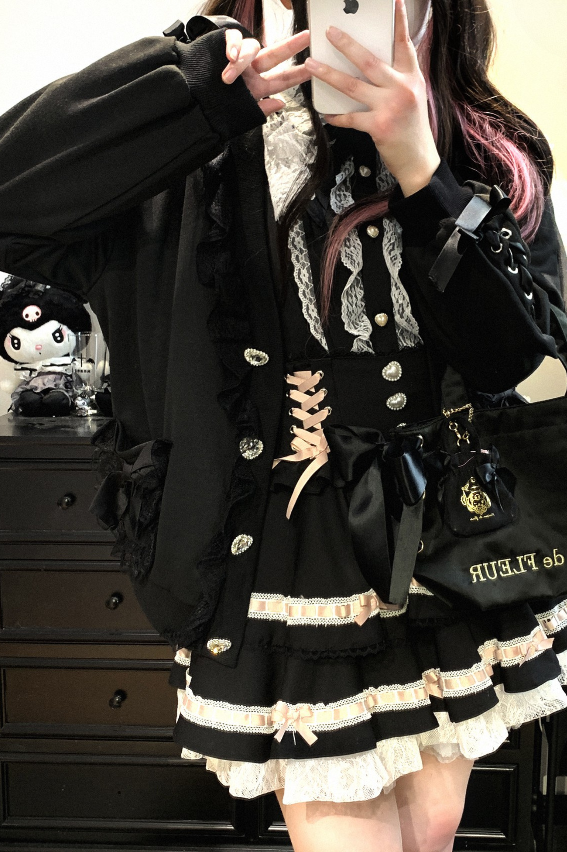 Schwarz-weißes Old School Lolita Fashion Kleid Bowknot Lolita JSK Set