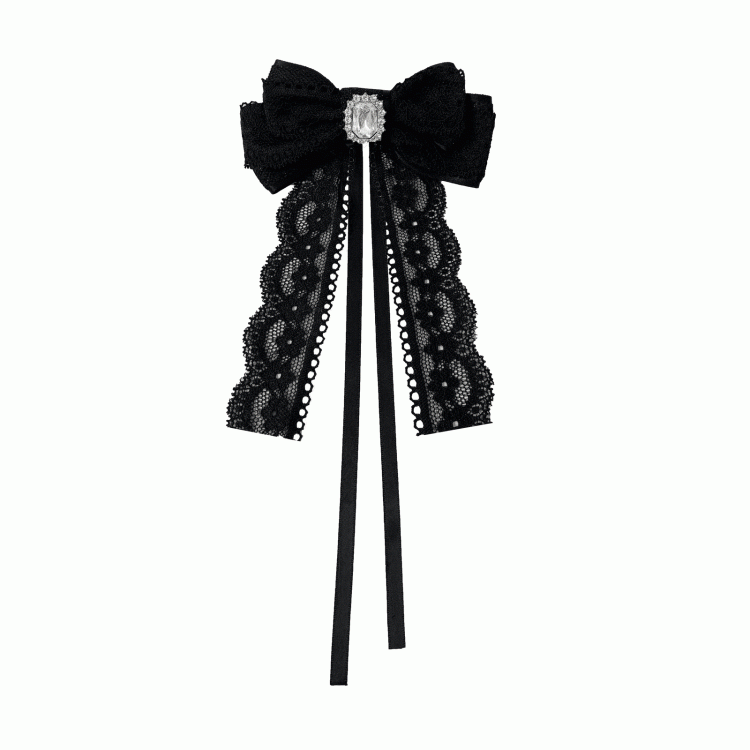 Spitzenfliege mit Strassverzierung Jirai Kei Schwarz