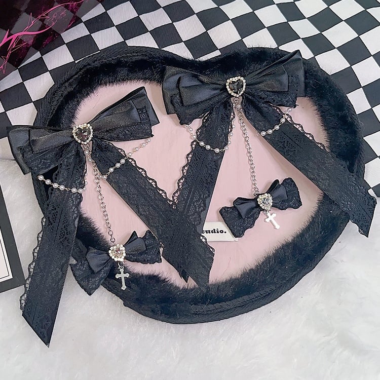 Spitzenschleife, Kreuz, Kei-Charm-Besatz, Jirai-Farboptionen, Haarspangen 3