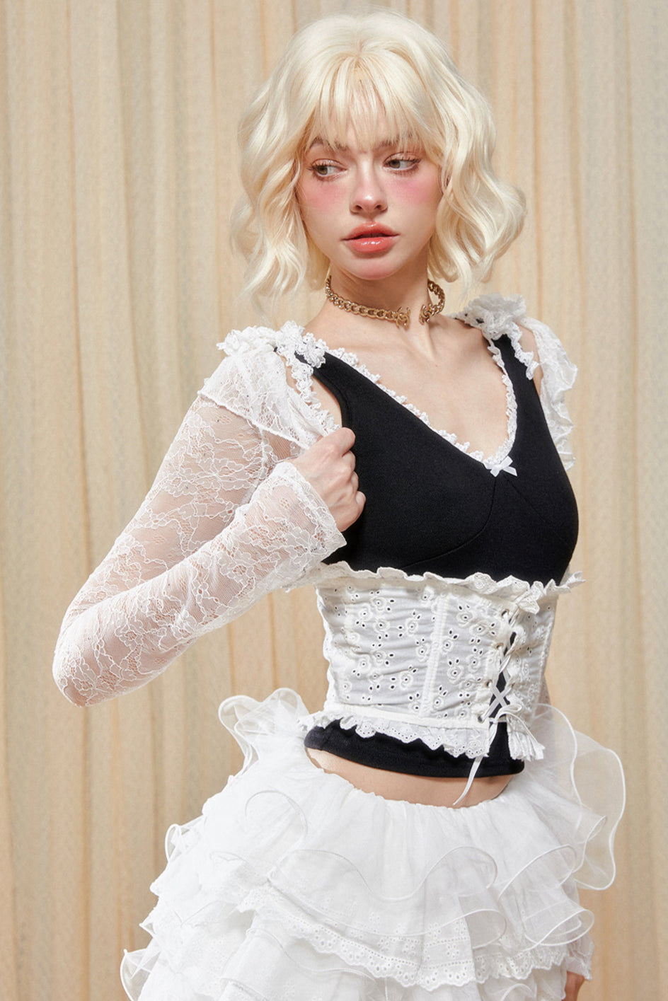 ❤Ultrakurze Strickjacke aus transparenter Spitze❤