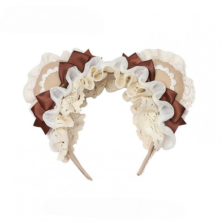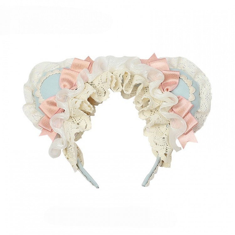 Rosa/Grün/Braun Sweet Lolita Bärenohr KC mit Spitze und Schleifendetails