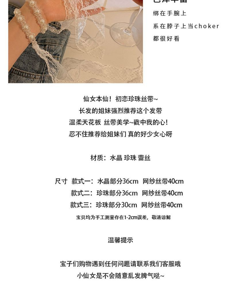 / Spitzen-Stirnband mit Kunstkristallen (verschiedene Perlendesigns)