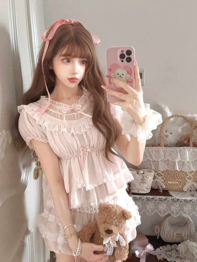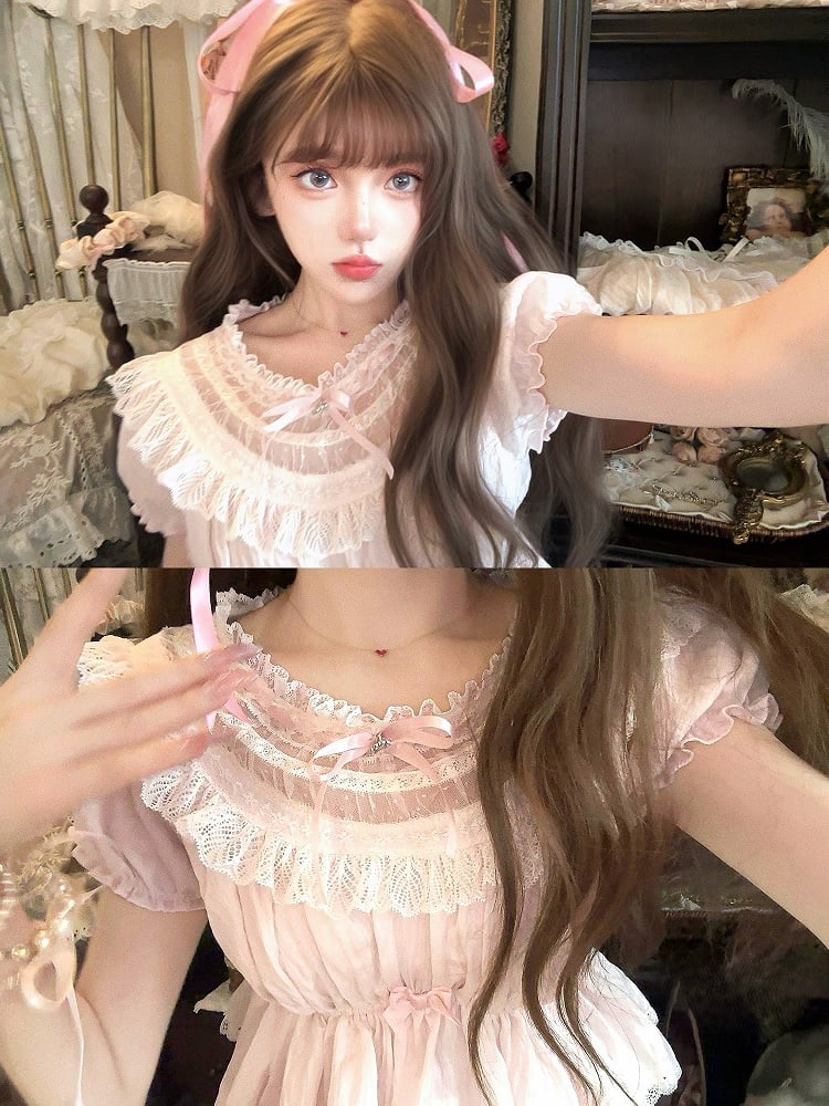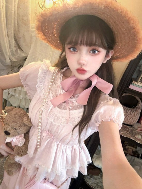 Rosa und weißes Old School Lolita Fashion Kleid Bowknot Detais Lolita JSK Set