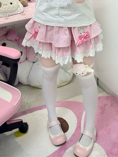 Rosa Stufenrock mit Spitzenbesatz und Schleife