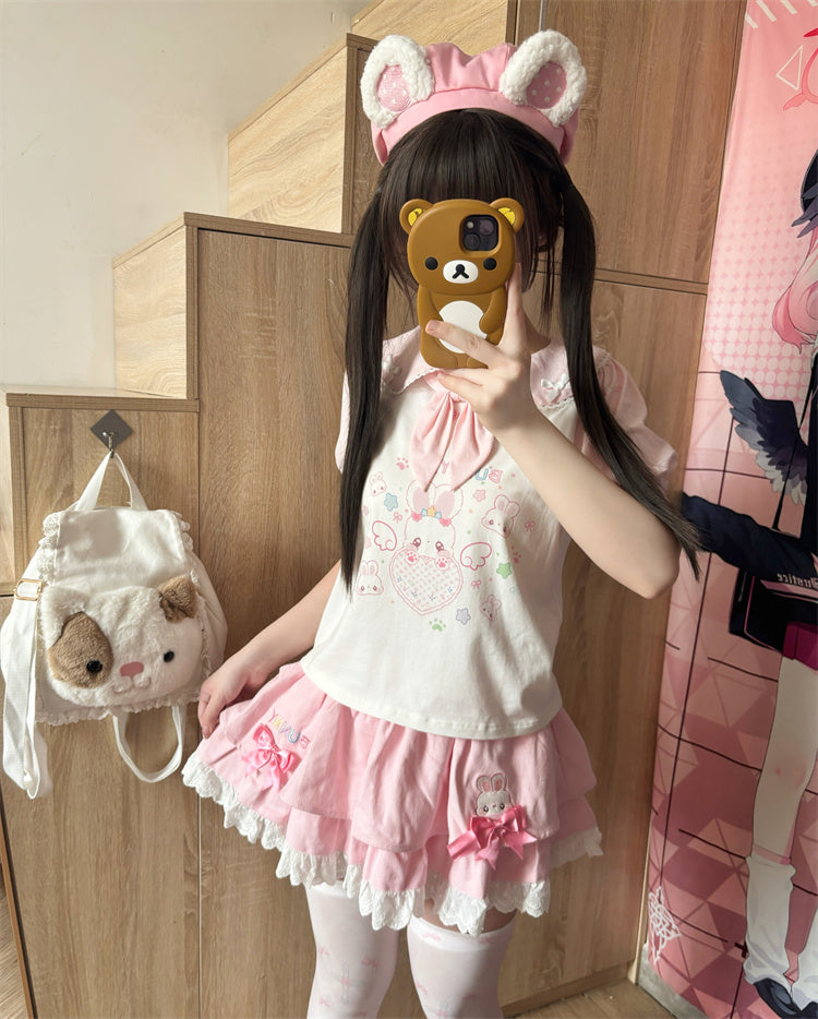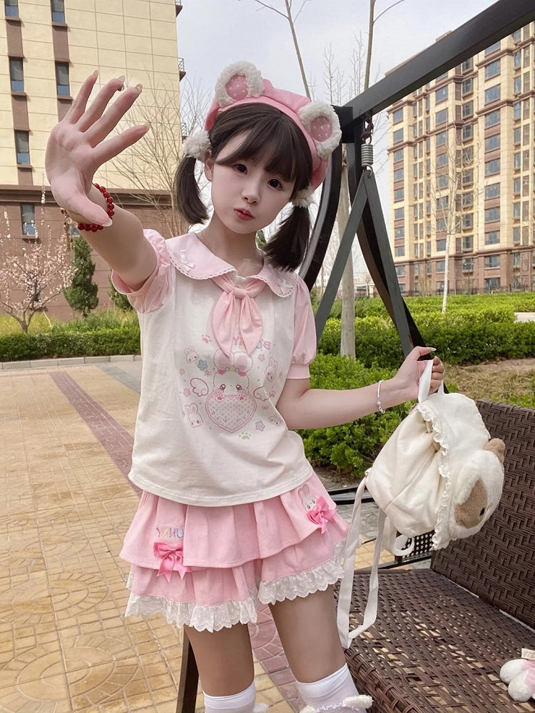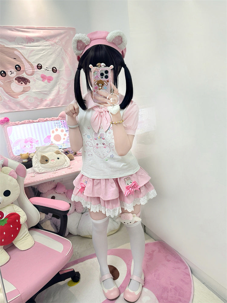 Rosa und weißes Old School Lolita Fashion Kleid Bowknot Detais Lolita JSK Set