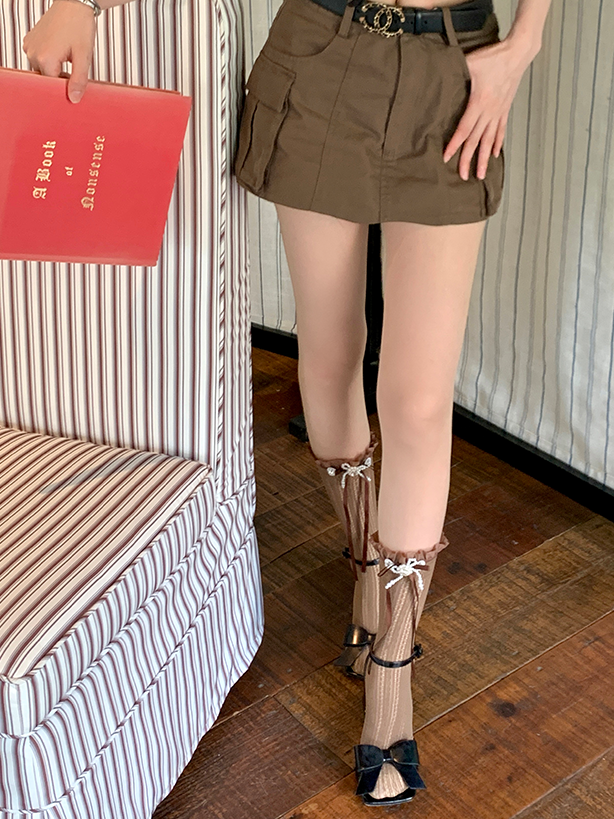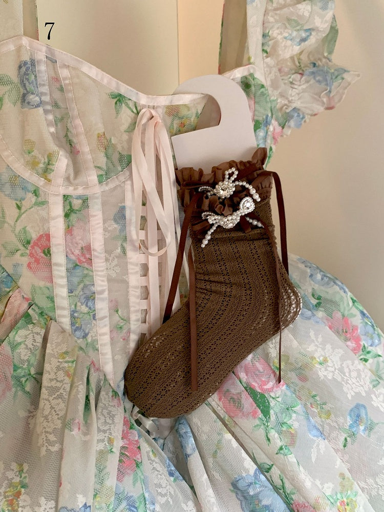 Spitzenbesatzsocken Weiß/Milchig Schleife Lolita Weiß/Schwarz/Rot/Lila/Grau/Braun