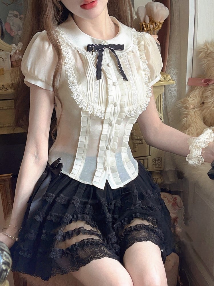 Spitzenbesetztes Set Puff Apricot Bluse Cami Sleeve Mit