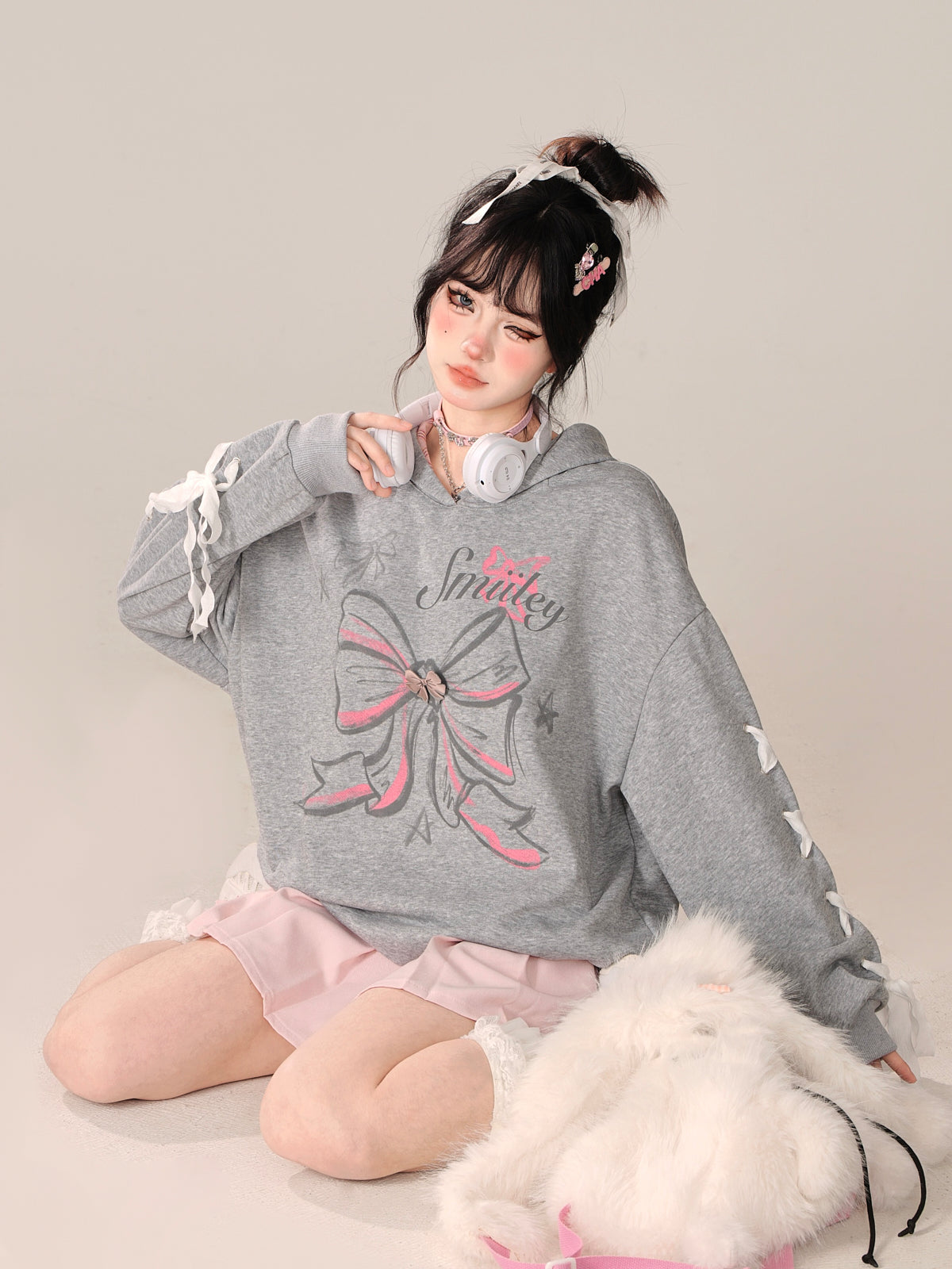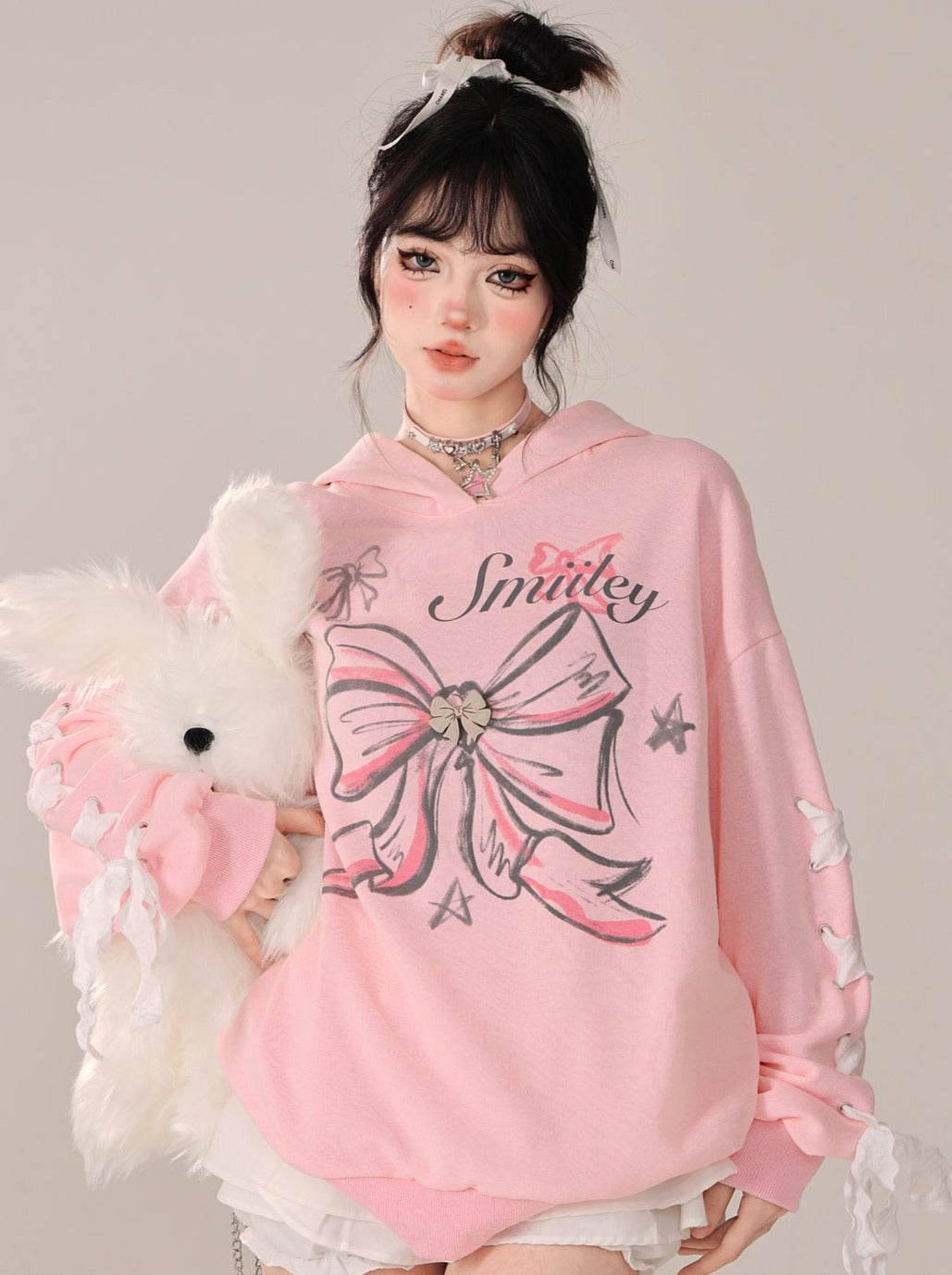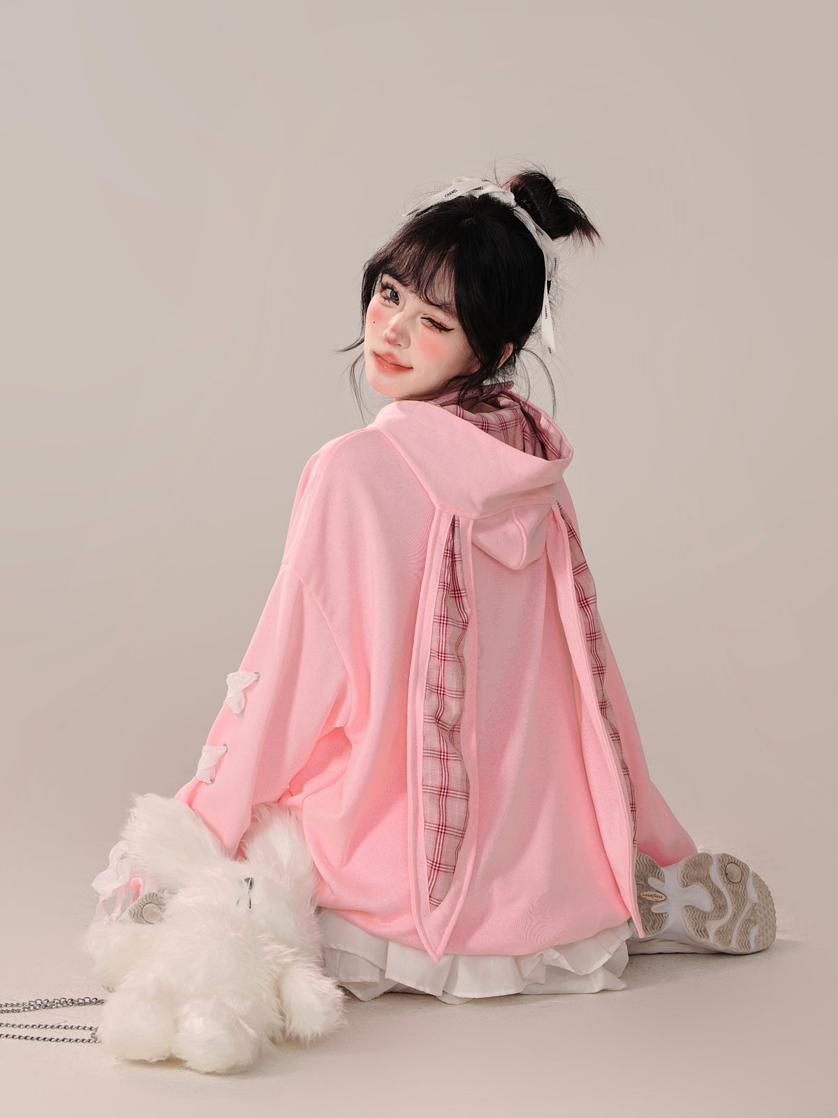Lockerer Parka mit Kapuze und Schnürung im Armband-Design mit Hasenmotiv